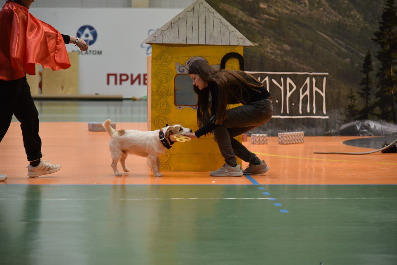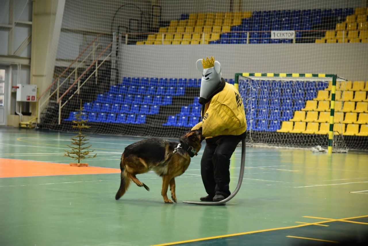 Праздник начался с театральной постановки, в которой участвовали не только сказочные герои, но и собаки. Четырёхлапые артисты продемонстрировали свою ловкость, сообразительность и храбрость. В финале представления собаки одержали победу над Мышиным королём и спасли Щелкунчика, Золушку и Деда Мороза.