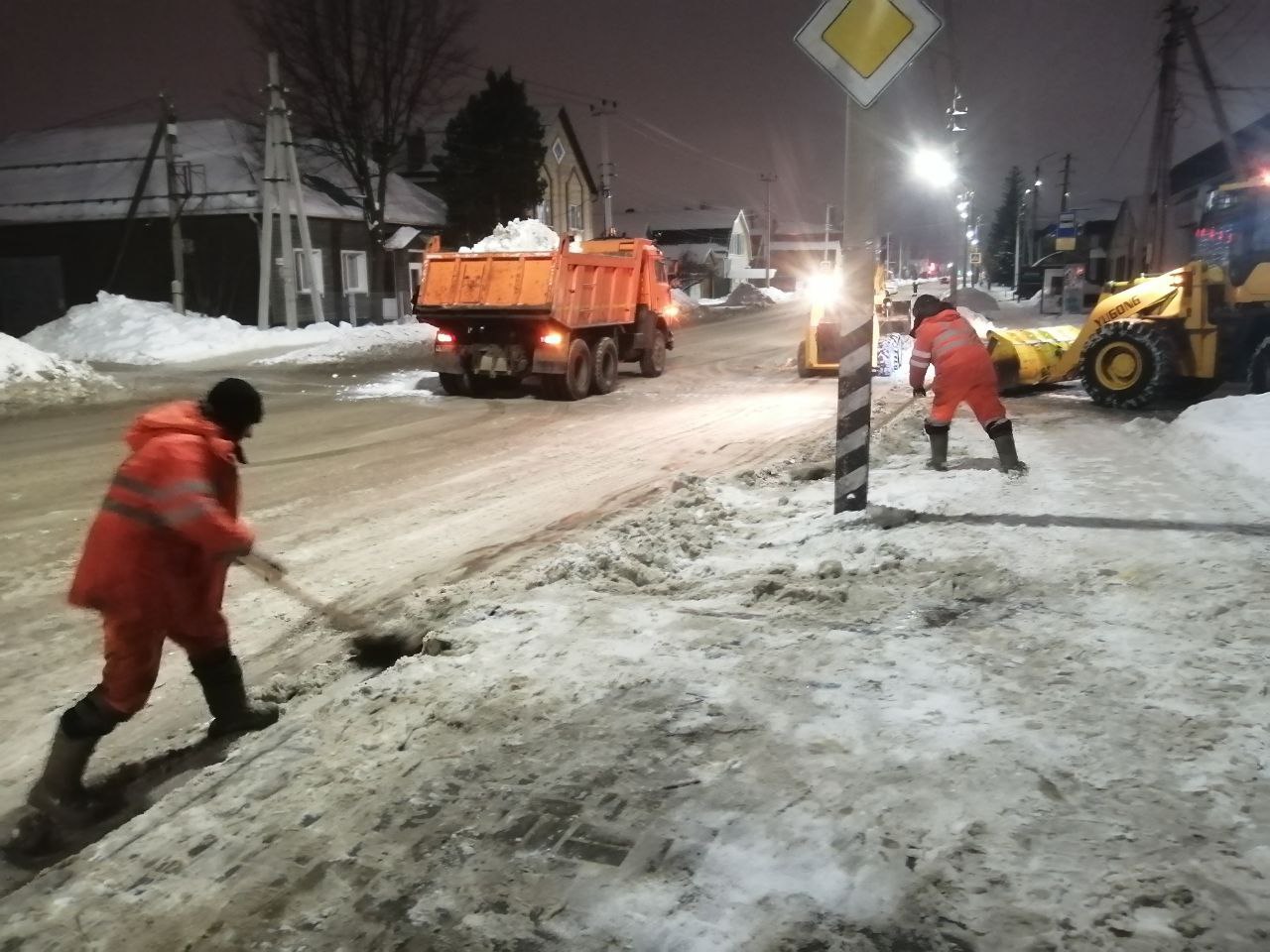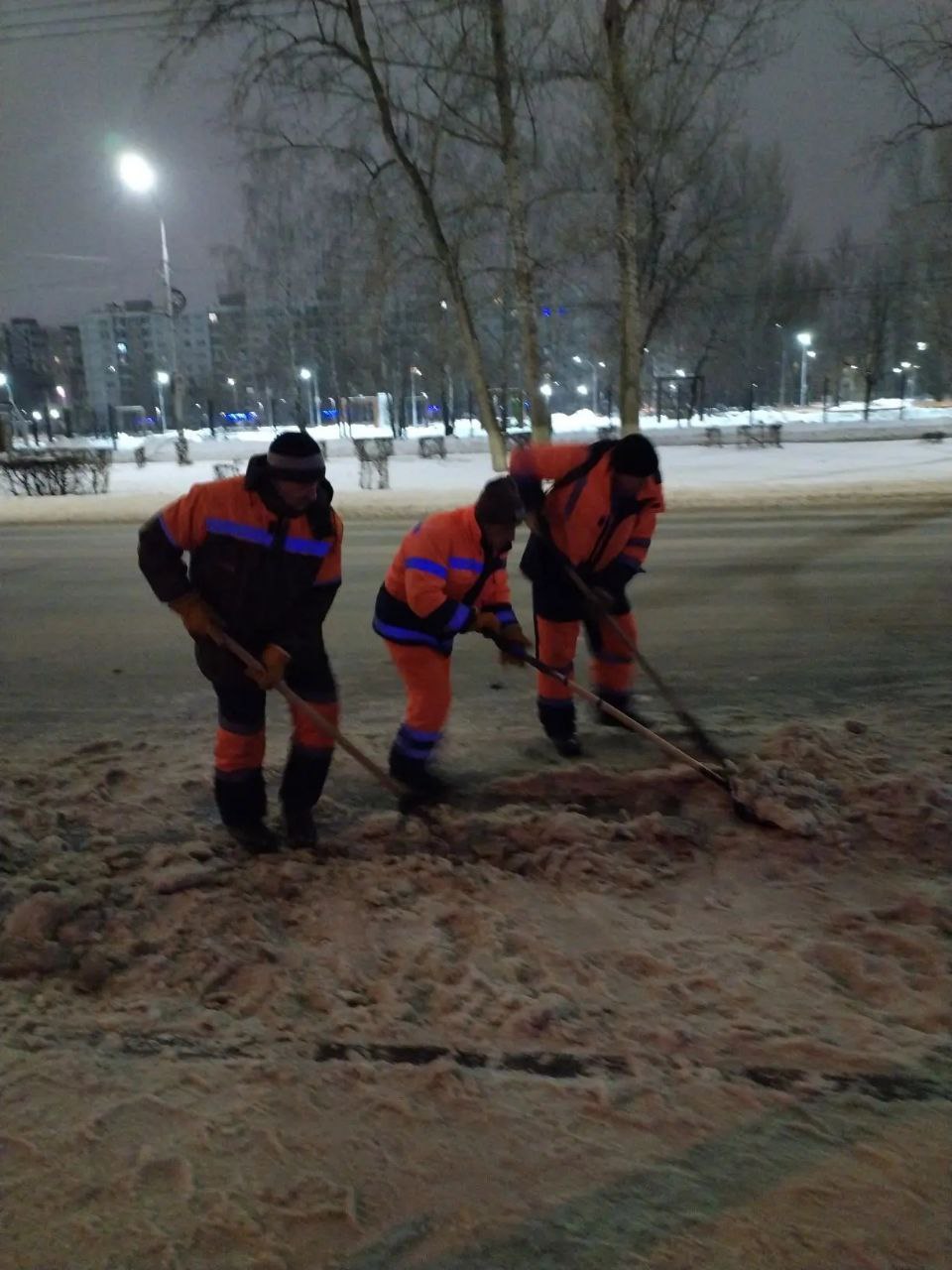 Сегодня ночью рабочие производили очистку и посыпку пескосоляной смесью дорог и тротуаров во всех частях города. Кроме того, коммунальные службы выполняли работы по комплексной уборке снега на улице Комарова.