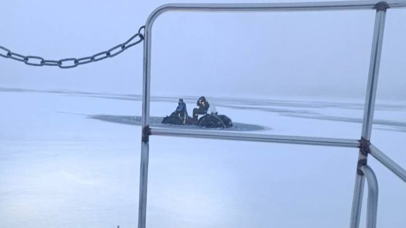 Двое мужчин на каракате провалились под лед.