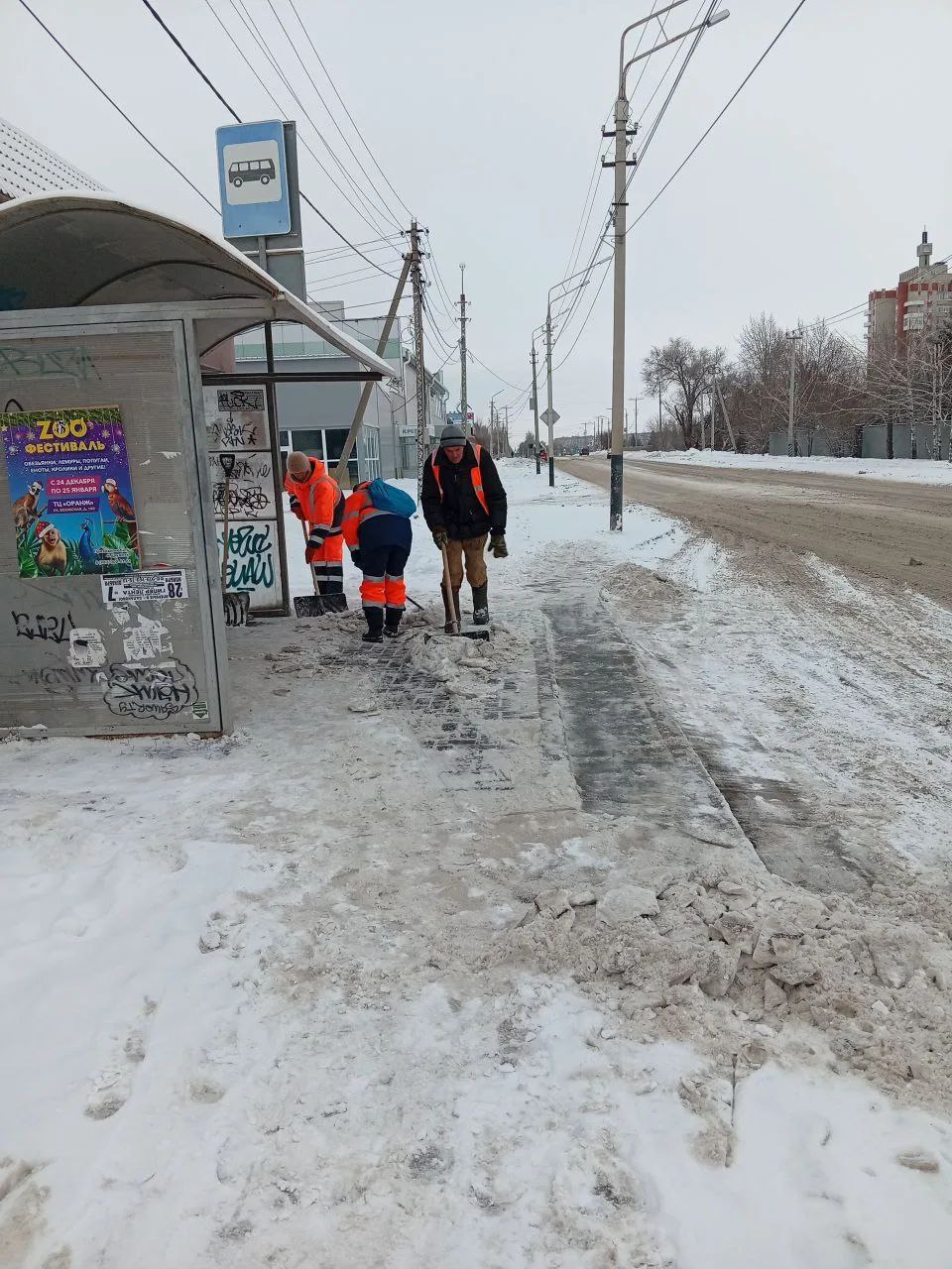Сотрудники «Комбината благоустройства» вручную очищают остановочные павильоны, тротуары и пешеходные зоны. В парках и скверах города продолжаются работы по очистке территорий от снега. Кроме того, рабочие осуществляют сбор бросового мусора и выемку мусора из урн на всех общественных территориях.