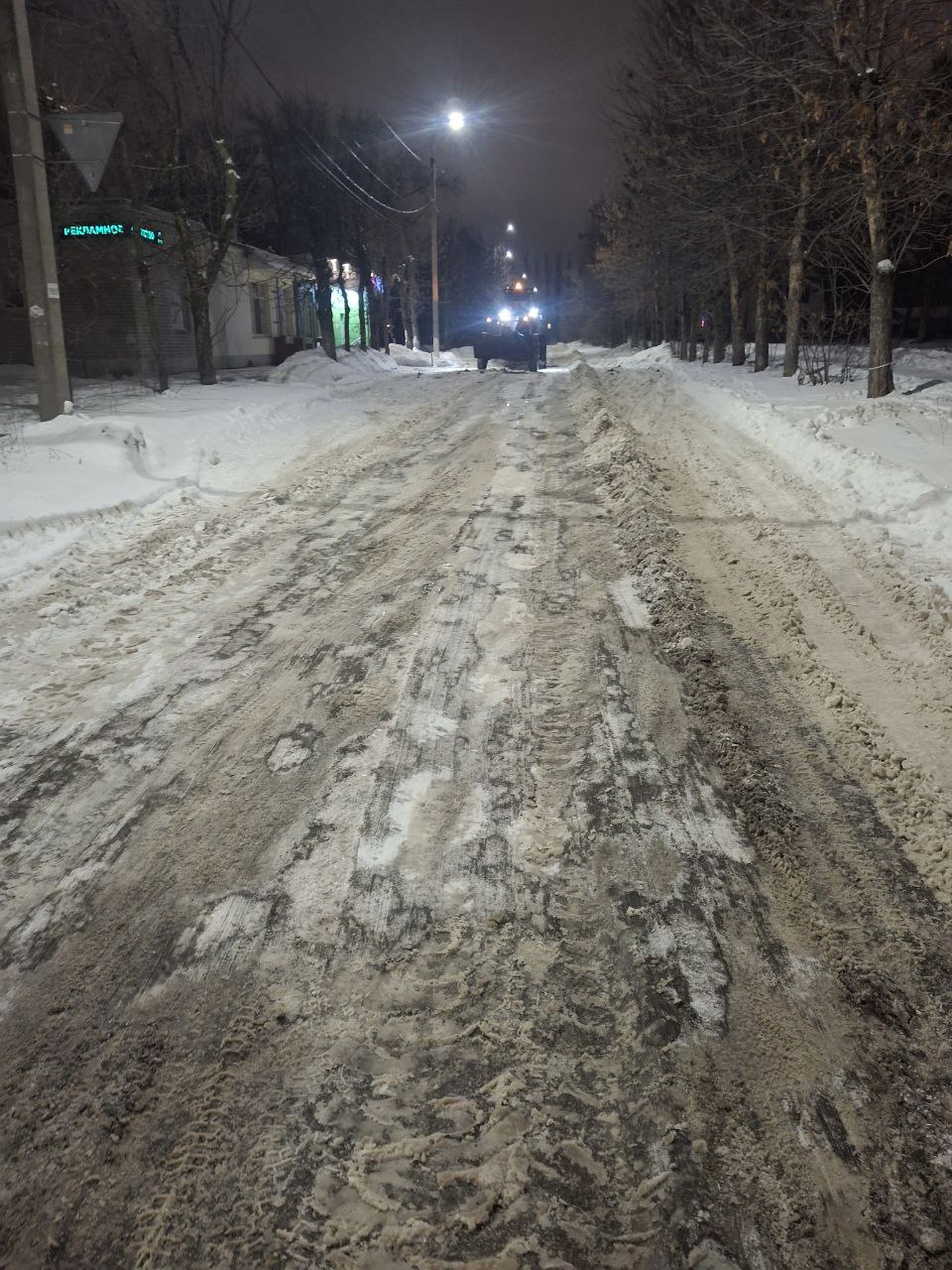 Сегодня ночью 25 единиц техники вышли на выполнение работ по очистке осевых и прилотковых дорог от снега. Грейдером производилась очистка и расширение дорог по улице Розы Люксембург и дороги на старую пристань.