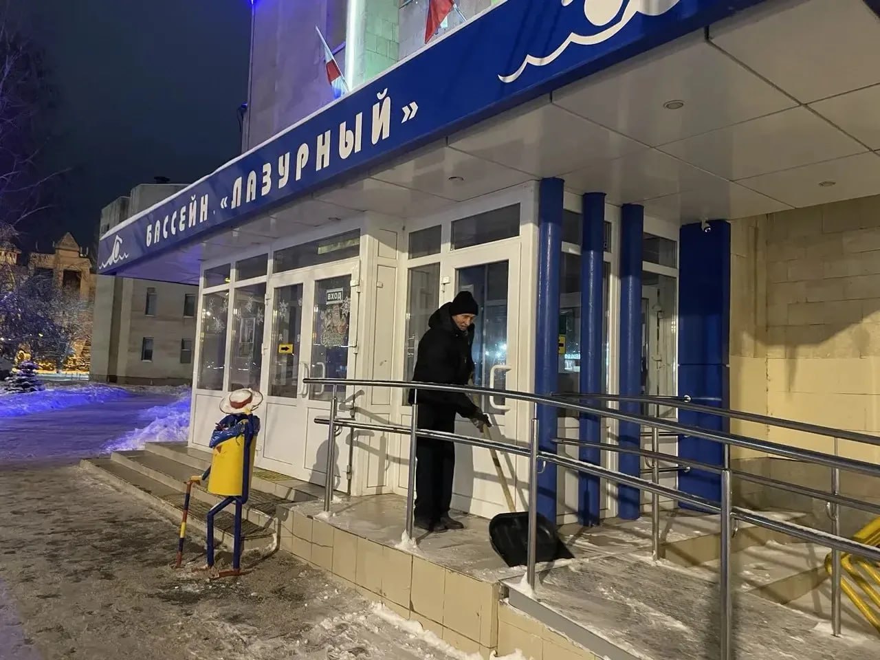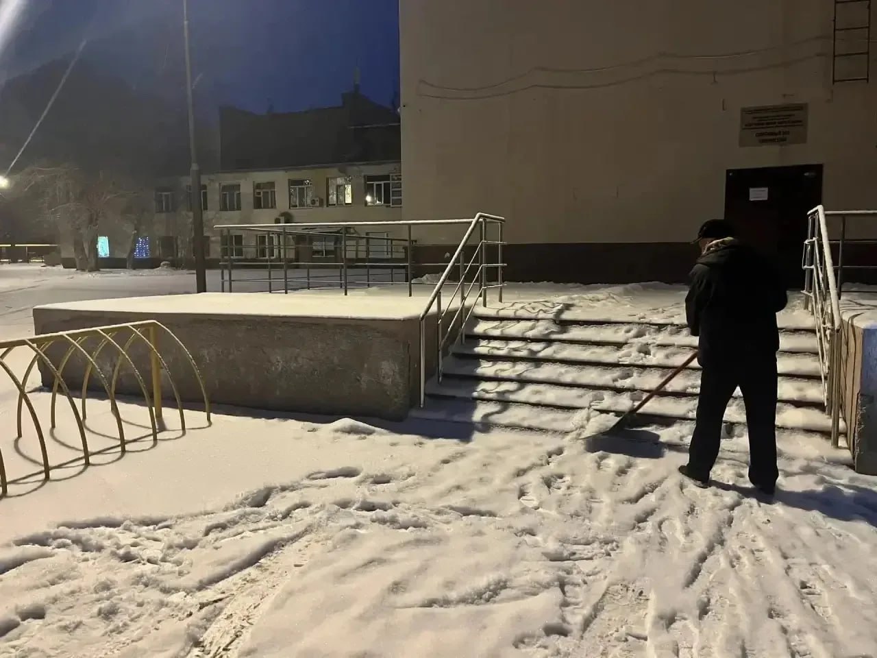 Также пешеходные дорожки и крыльца расчищают у спортивных объектов, работы по очистке снега проводятся на катках во вех микрорайонах города.