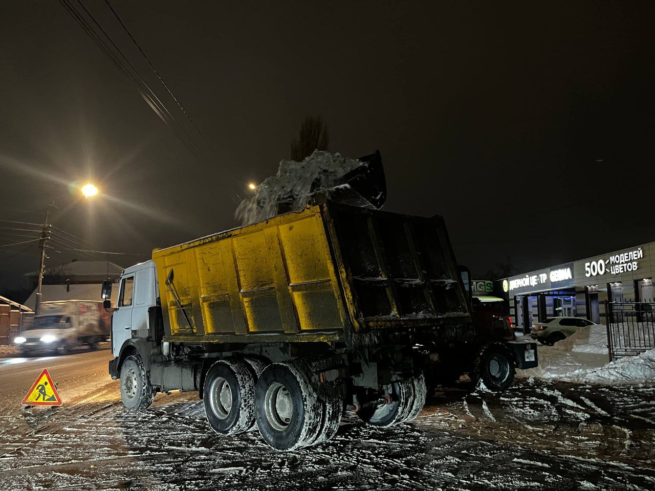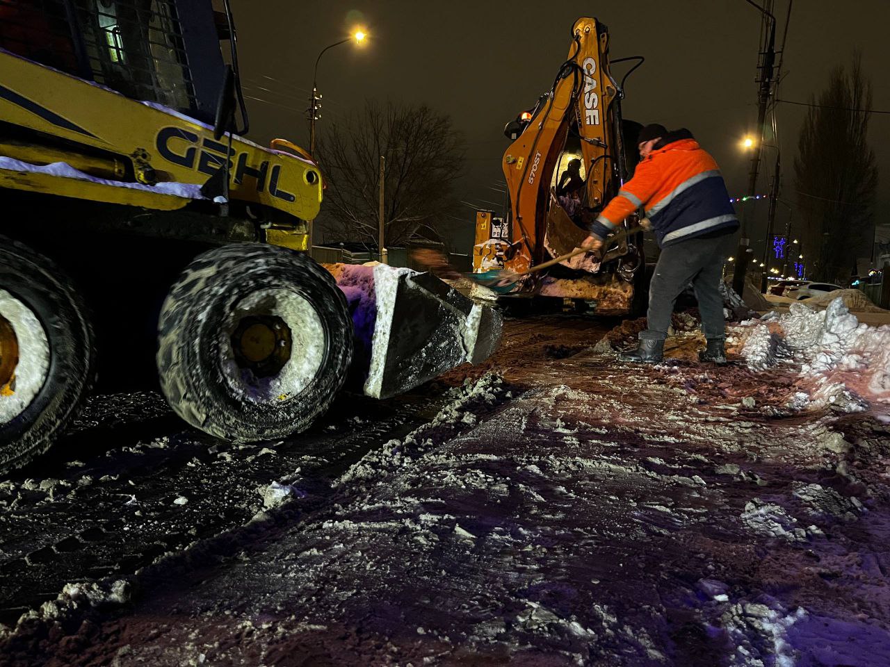 В ночные часы в городах и сёлах области ведётся уборка снега