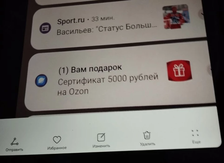 В поисках решения проблемы женщина обнаружила, что все инструкции в интернете сводятся к простому шагу — авторизации на сайте и отключению подписки в личном кабинете, которого у неё не было. В это время она вспомнила о пуш-уведомлениях, которые приходили несколько дней подряд от Ozon. Сообщения содержали заманчивые предложения: "Вам подарок. Сертификат на 5 000 рублей", и чтобы его получить, нужно было перевести один рубль. Подобное предложение показалось ей неприметным, поэтому она решила нажать на уведомление.