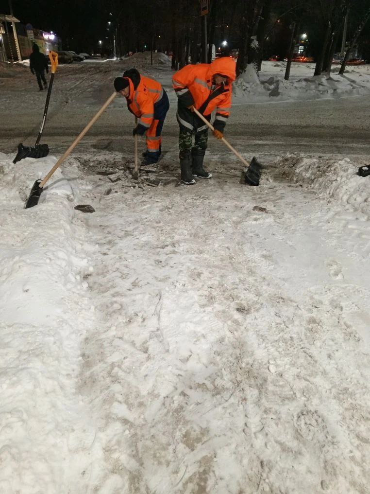 В приоритетном порядке велась расчистка и обработка противогололёдными материалами основных магистралей, пешеходных зон, проездов и подходов к социальным учреждениям и остановочным павильонам.