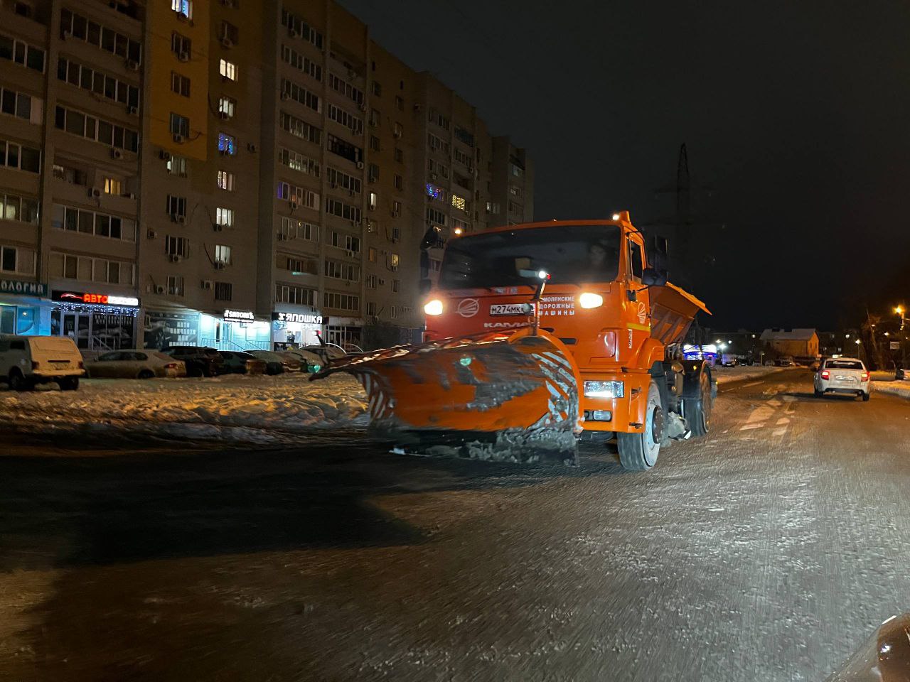 В первоочередном порядке с начала снегопада проводилась обработка улично-дорожной сети противогололёдными материалами, что позволило предотвратить образование накатов. Параллельно продолжались работы по вывозу снежных масс.