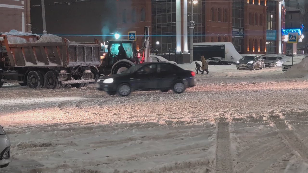 Снег идёт почти сутки. Всем руководителям служб благоустройства поставлена задача: максимально использовать ночное время для расчистки магистралей и вывоза снега.