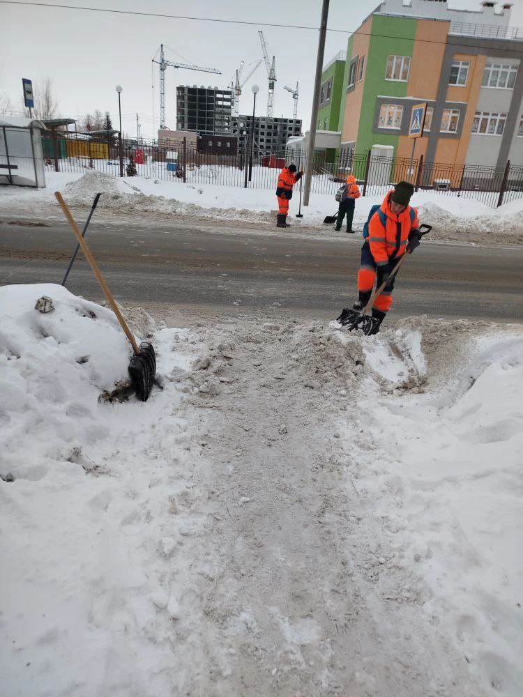 В плановом режиме по всему городу продолжается очистка пешеходных переходов, остановочных павильонов, подходов к объектам социальной сферы, парков и скверов. Применяется как механизированная, так и ручная уборка снега.