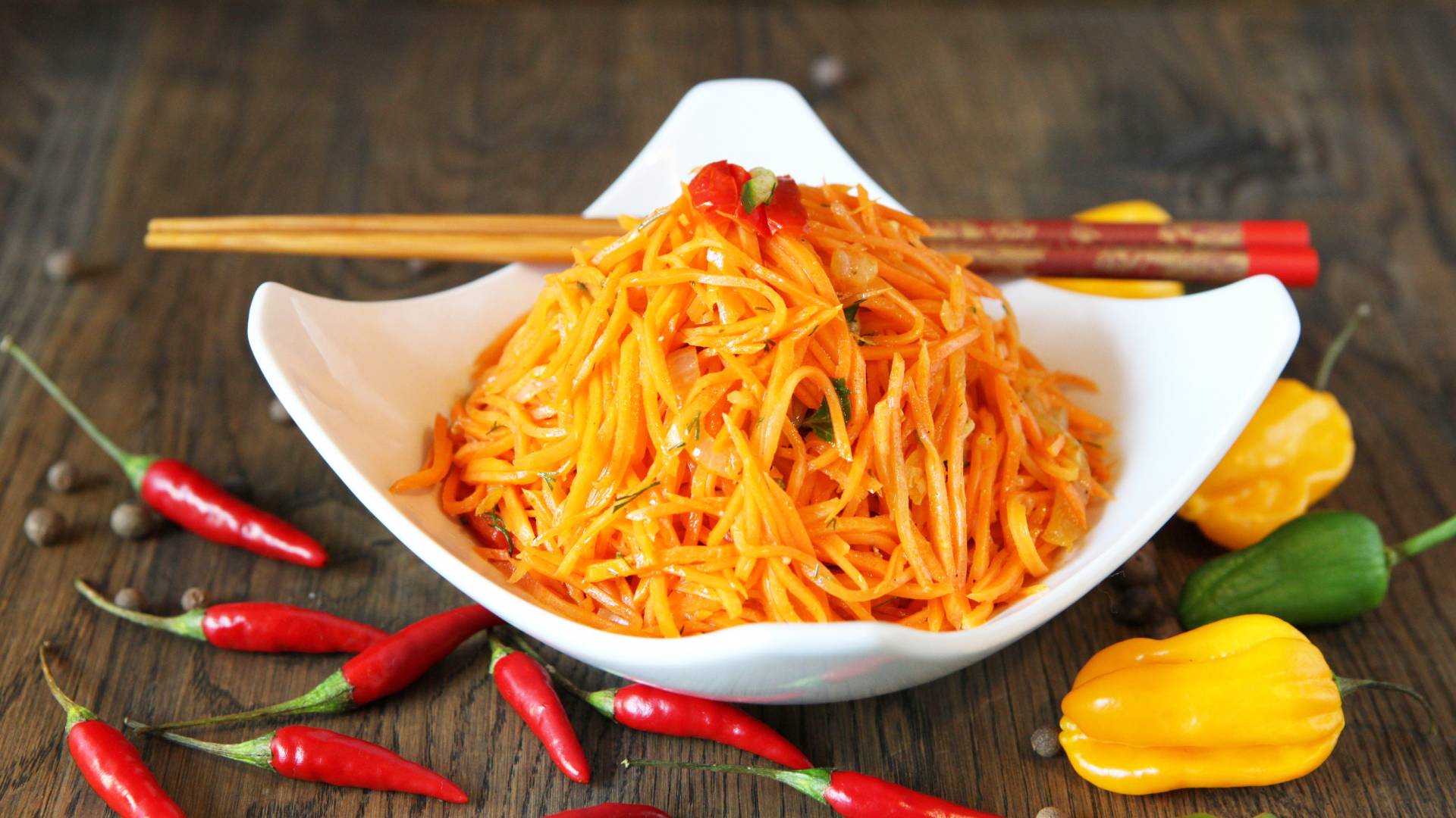 Если вы обожаете пряные блюда восточной кухни, запоминайте этот рецепт. С его помощью вы приготовите вкусную и ароматную морковь по-корейски. Понадобятся любимые приправы и специальная терка, чтобы овощ получился соломкой.