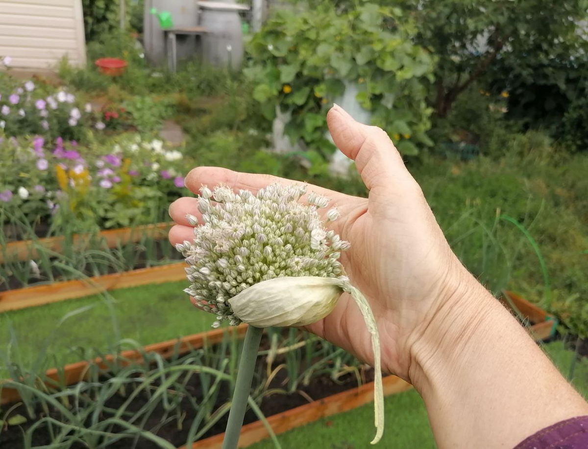 Второй год жизни лука-порея также принес свои плоды. Сорт "Русский размер" подарил первый цветонос, радуя садоводов. По мере цветения, был зафиксирован успех второго цветоноса, хотя он оказался меньшего размера, и семена не успели образоваться. Важный нюанс: с приходом сентября, когда температура начала падать, зрелые зонтики были срезаны и занесены в дом для дозревания, что стало удачным методом сбора семян.