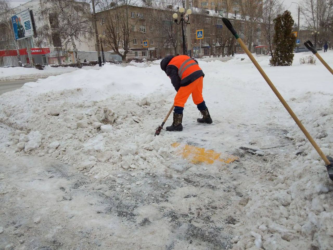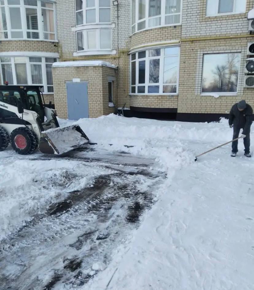 Также люди убирают снег на тротуарах, пешеходных зонах и остановках общественного транспорта, уделяя особое внимание местам с интенсивным движением пешеходов.