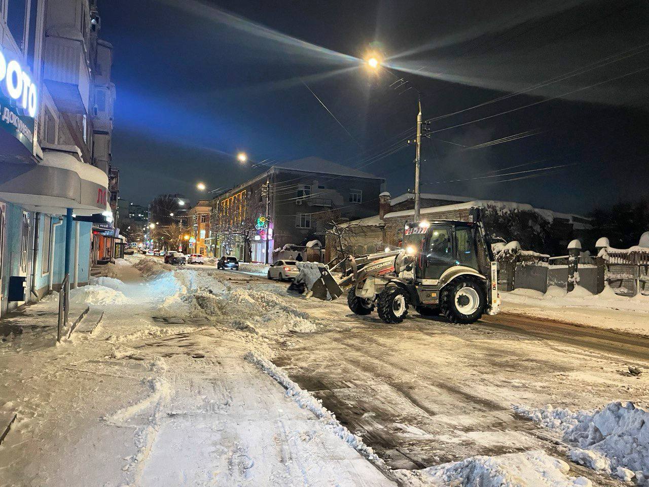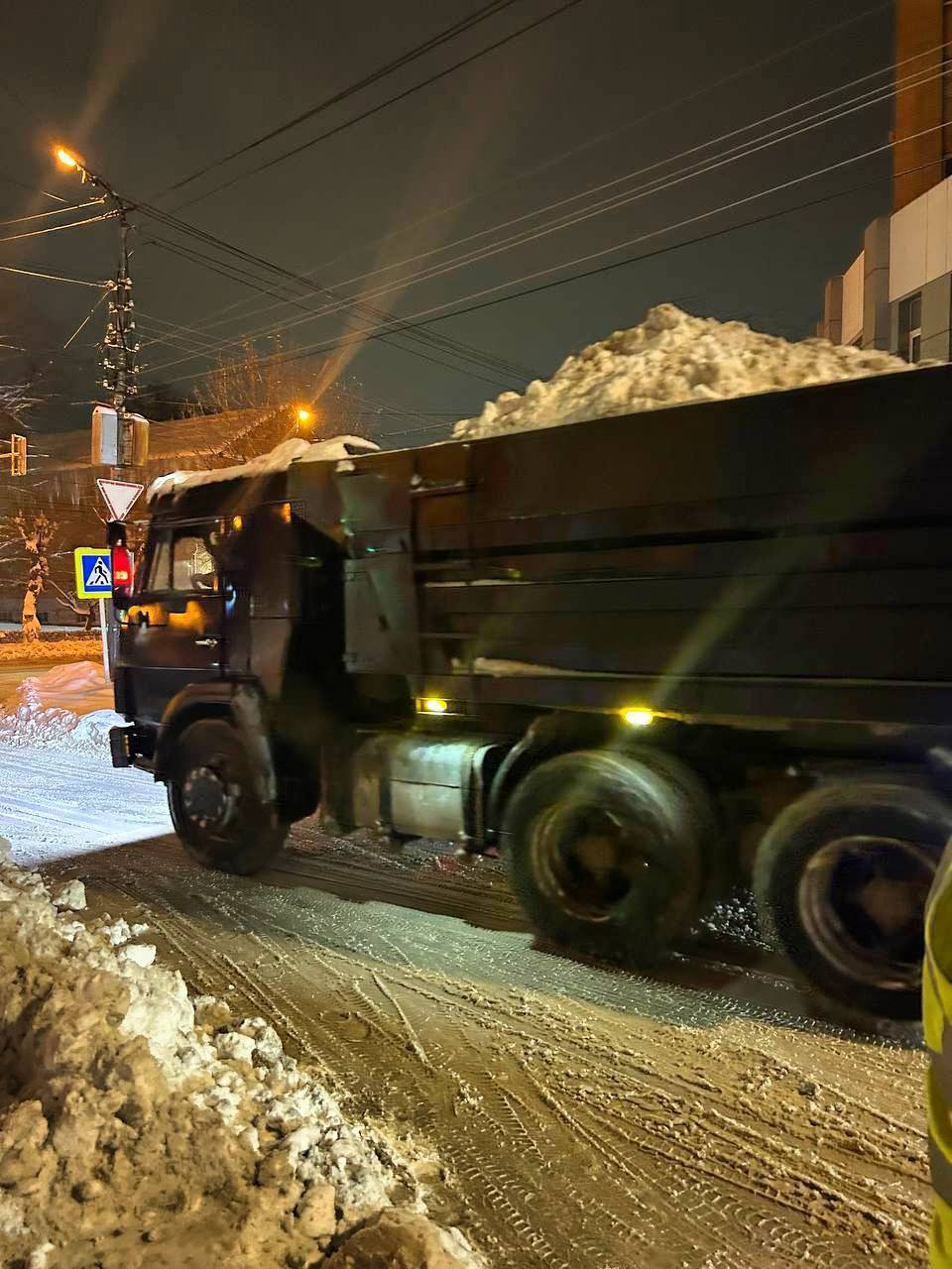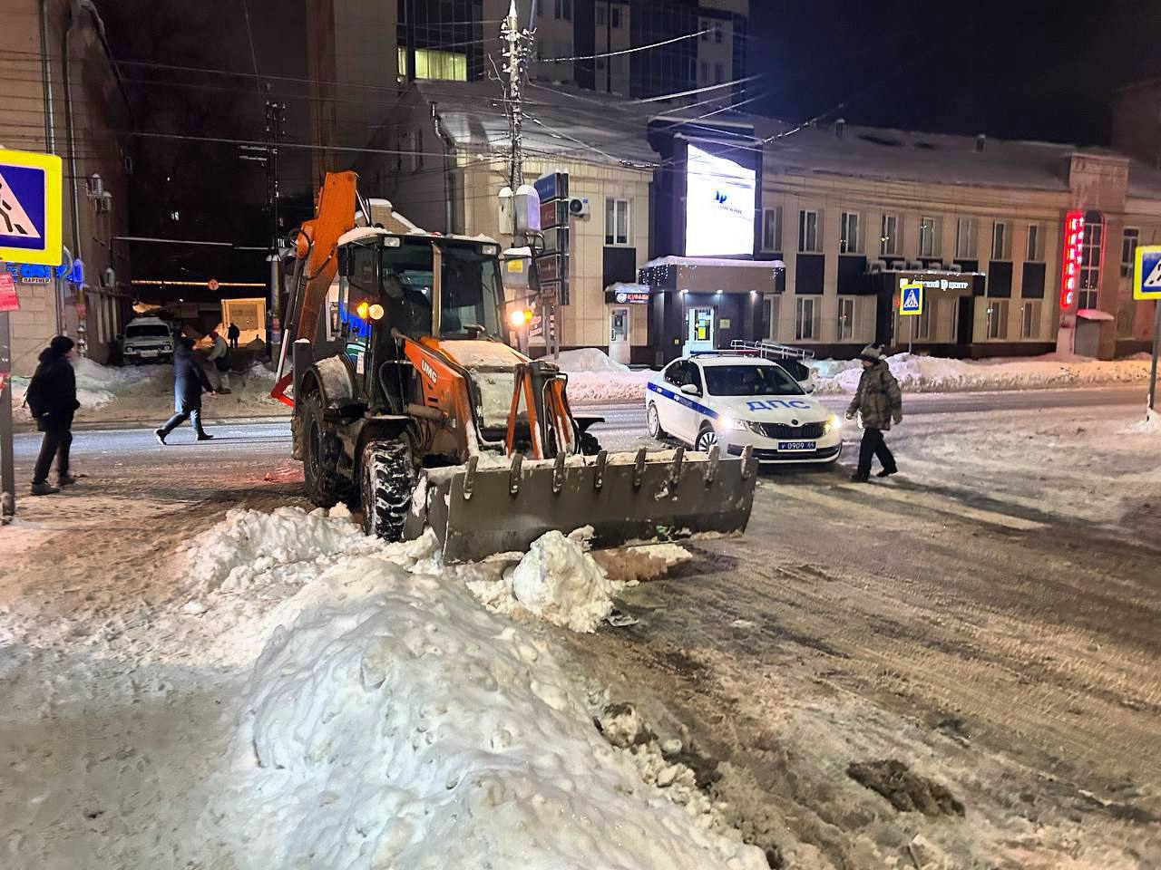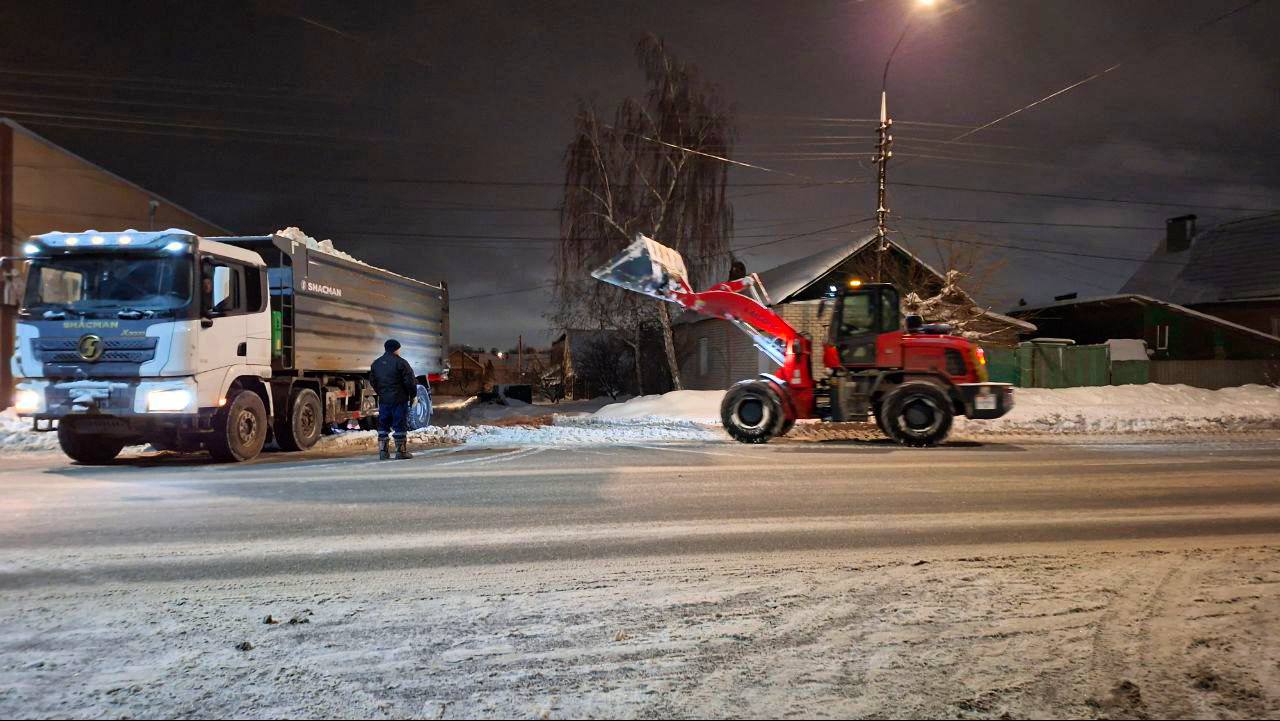 В ночное время работы по вывозу снега с улиц: Маяковского, Л.Кассиля, Коммунистической и других проводятся комплексно, в том числе с временным перекрытием движения для безопасности и эффективности уборки.