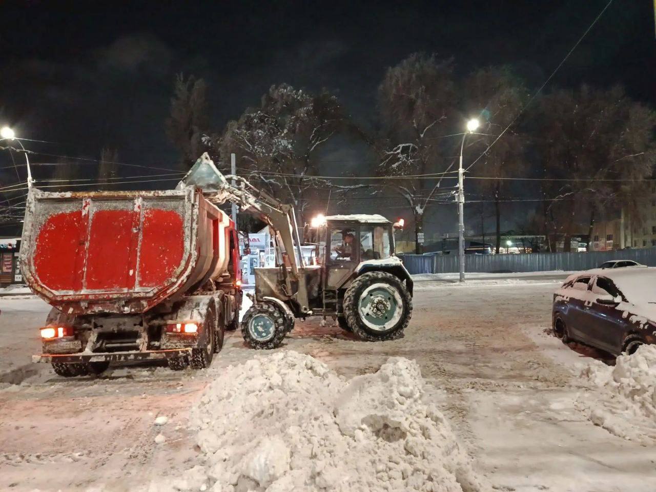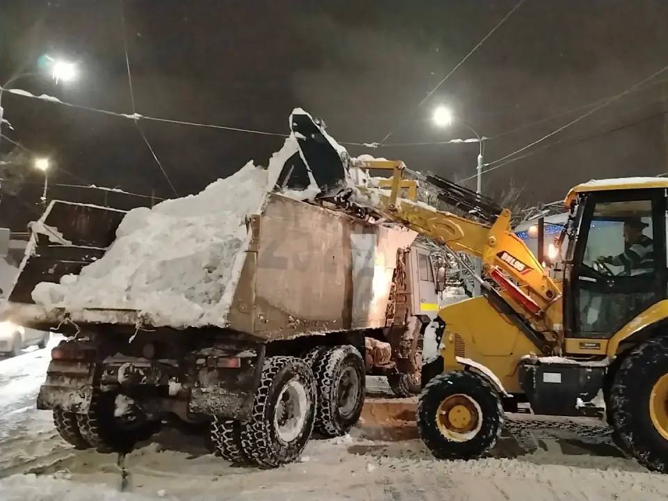 В течение ночи коммунальные службы города устраняли последствия снегопада