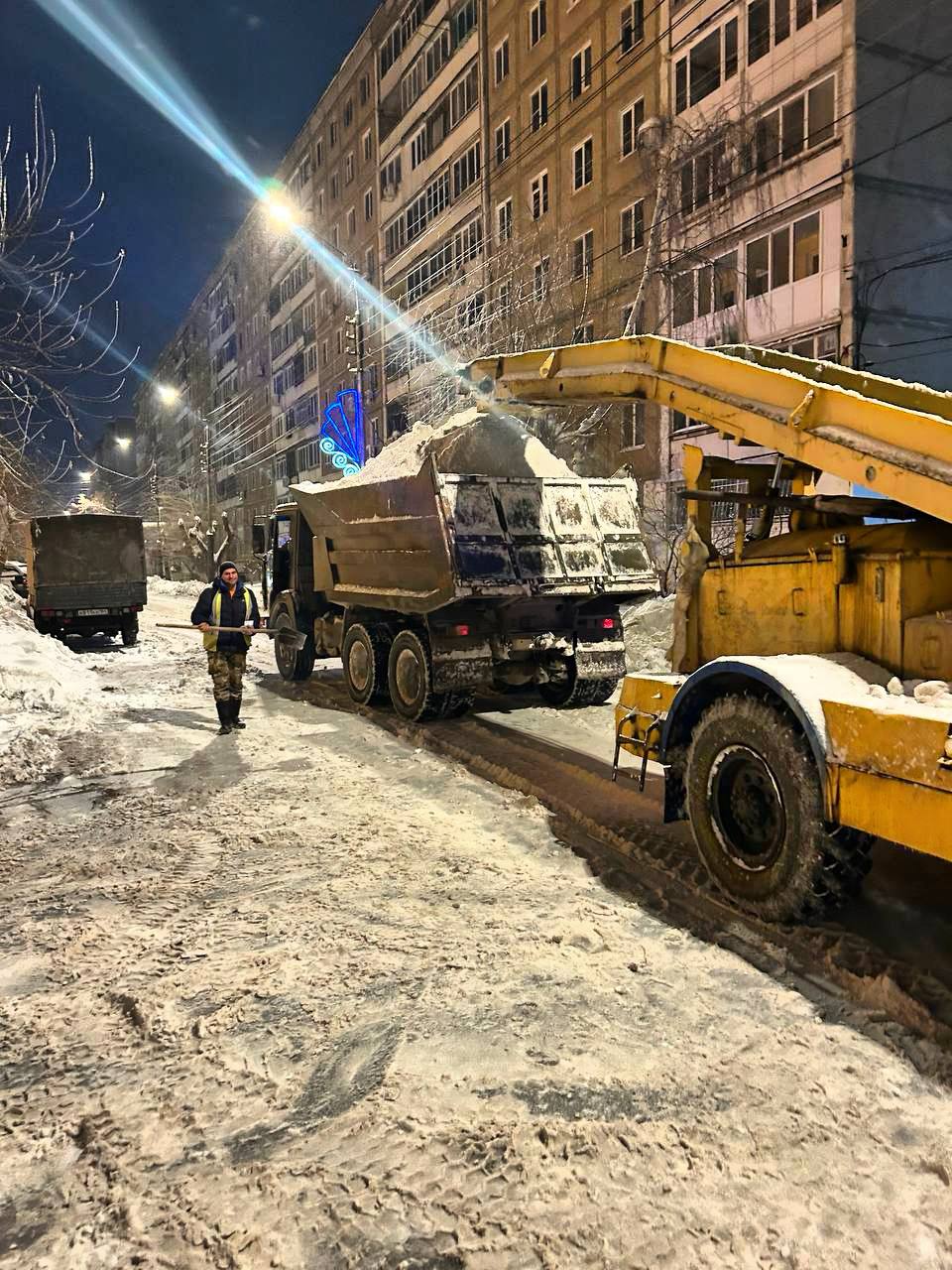 Снег вывозили по ул. Л. Кассиля, Маяковского, Коммунистическая, вблизи поликлиники 3, 1, клинической больницы 1 и др. Только за ночные часы вывезено порядка 2 300 кубометров снега.