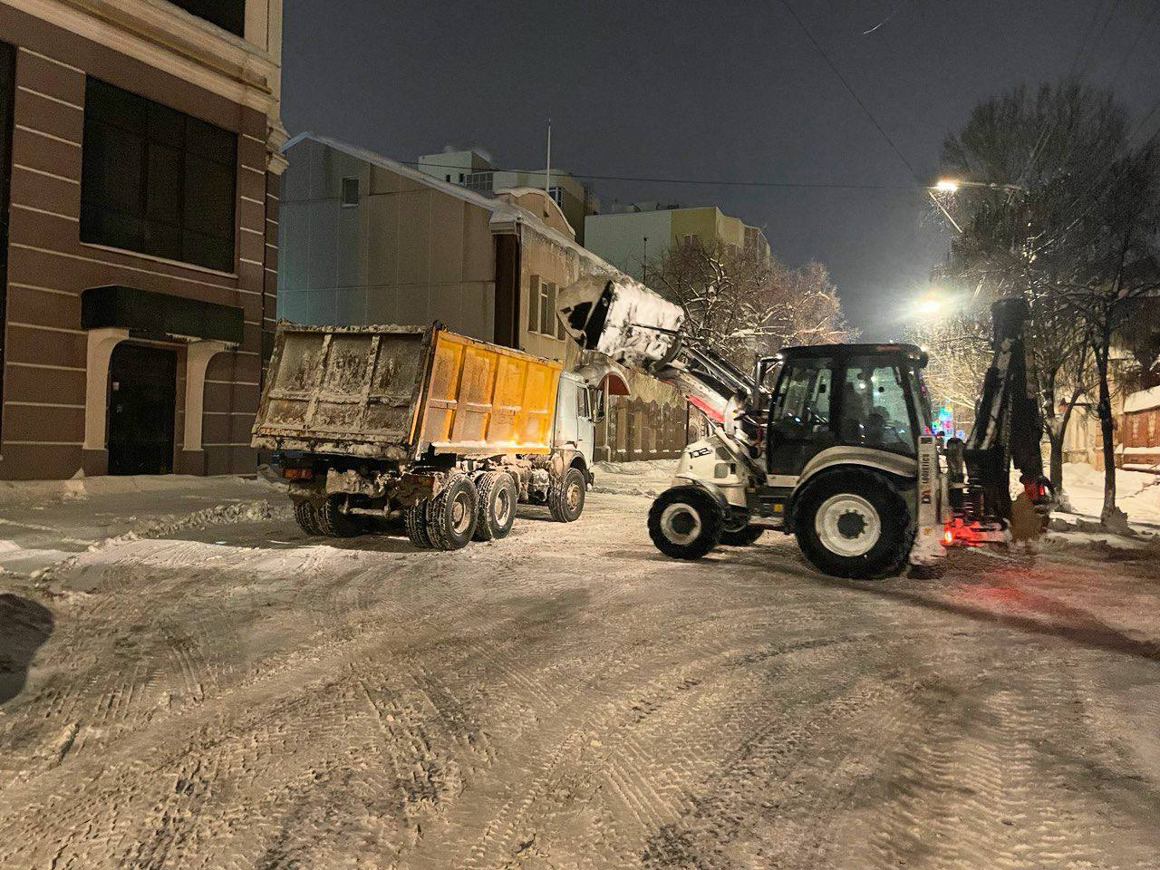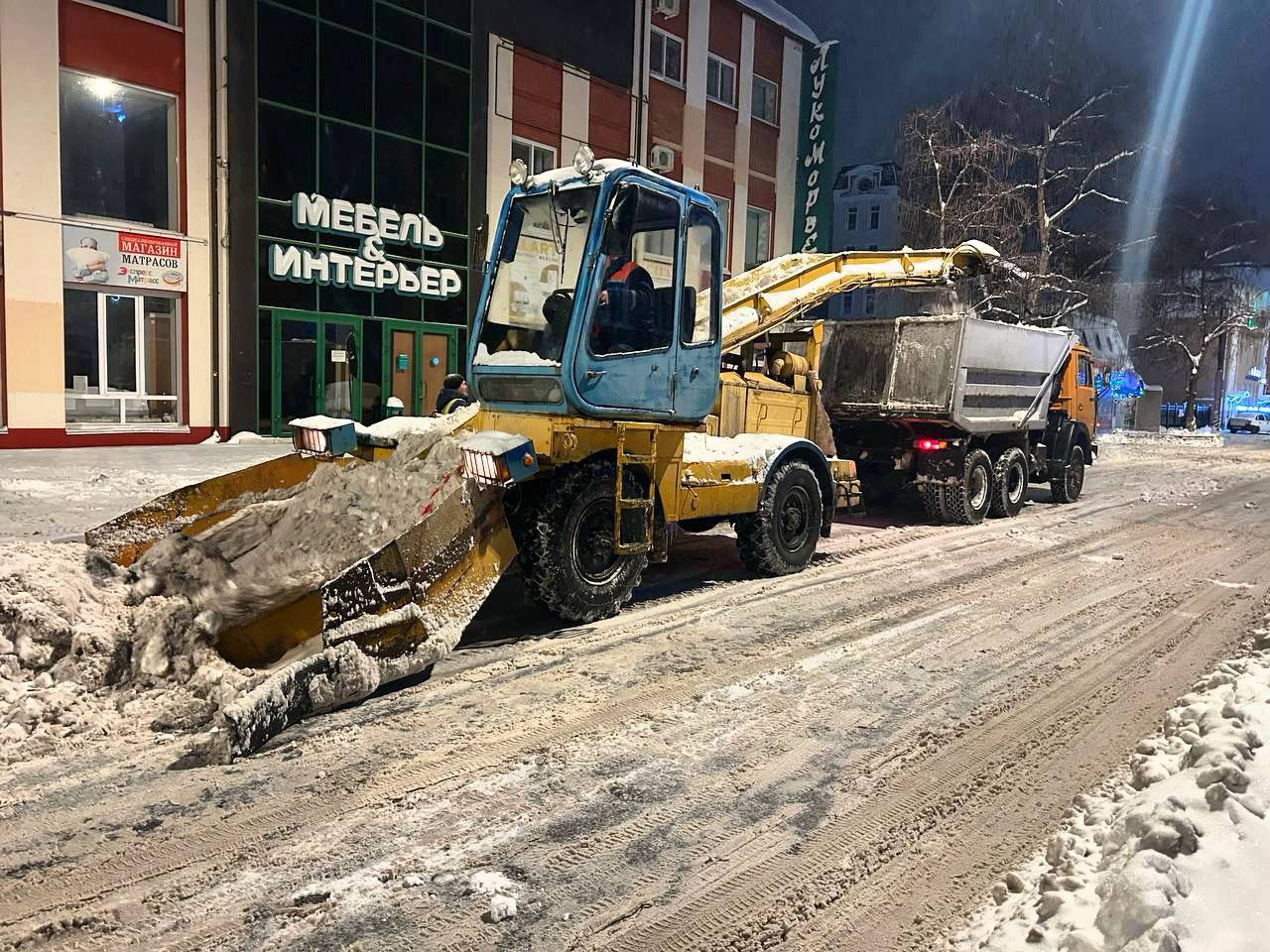 В круглосуточном режиме продолжаются работы по уборке снега в городе