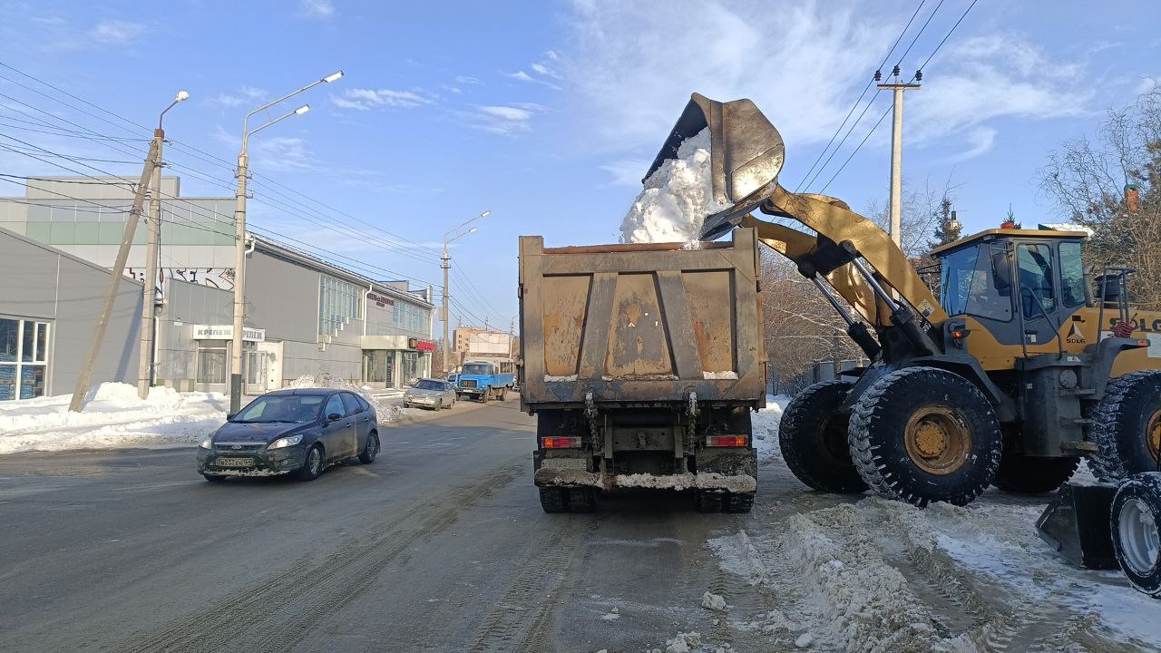 Производится вывоз снега на полигон. Работы ведутся во всех районах города. Сегодня снег вывозят с улиц Коммунистическая, Ленина, Комарова, Набережная Леонова.