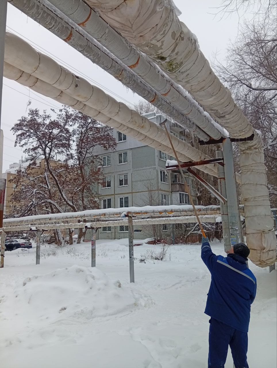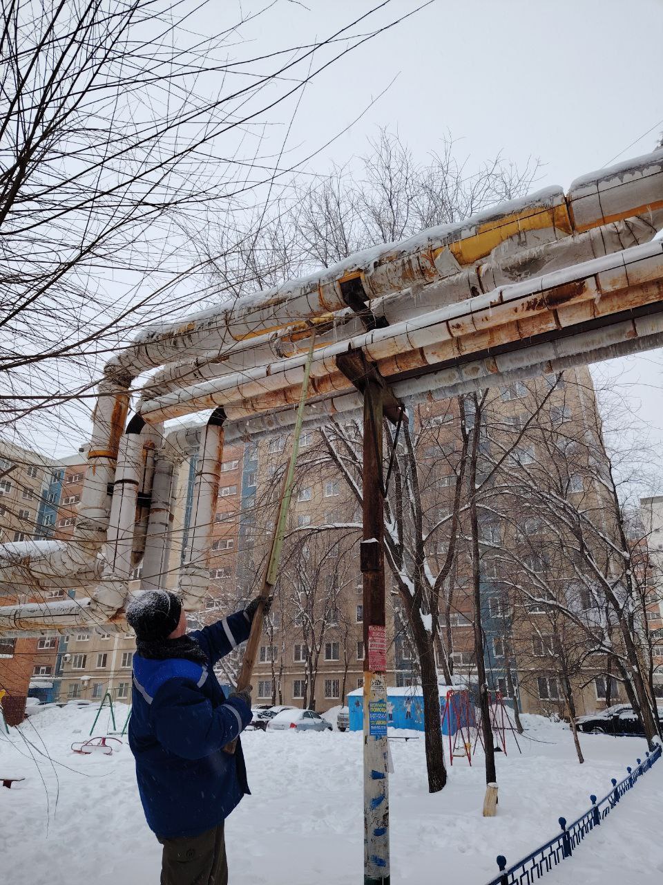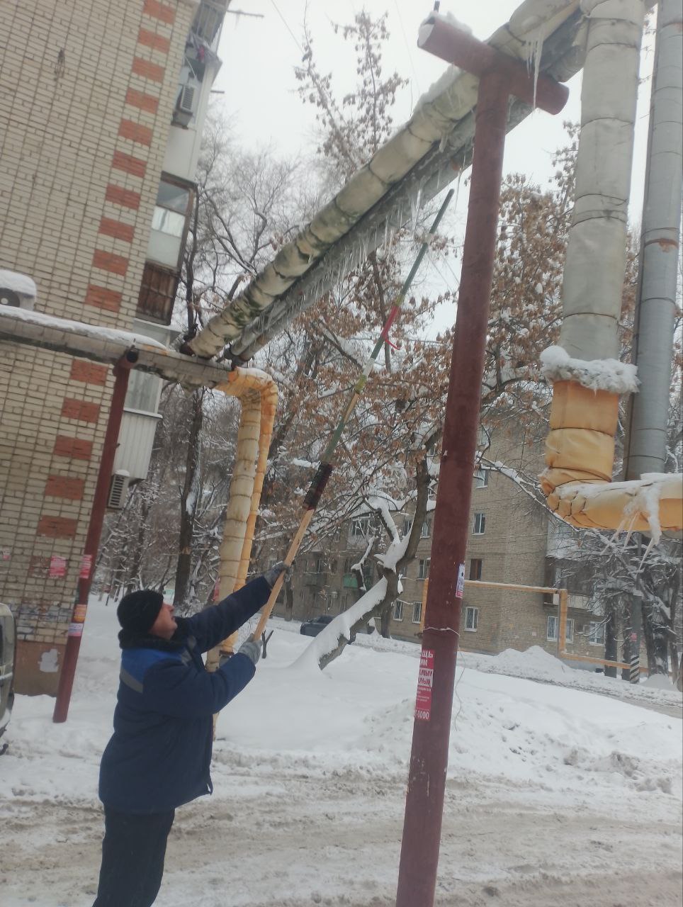 В связи с погодными условиями на трассах теплоснабжения наблюдается образование наледи.