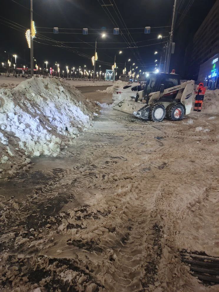 В Саратове на транзитных маршрутах, переданных области, этой ночью велись работы по вывозу снега. Это улицы по проспекту 50 лет Октября, Энтузиастов, Большая Горная, Соколовая и другие. Задействовано порядка 80 единиц снегоуборочной техники. Днём работы будут продолжены. Стоит задача максимально расширить проезжую часть после снегопадов.