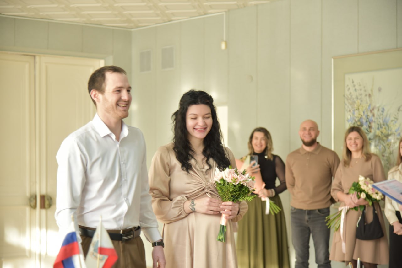 Максим работает на заводе, Яна — барриста. Но сердце Максима покорило не кофе, а красота Яны. Они познакомились в интернете в 2022 году, проверили свои чувства временем и решили зарегистрировать брак в красивую дату — 16 января 2026 года. Кстати, обоим молодожёнам по 26 лет.