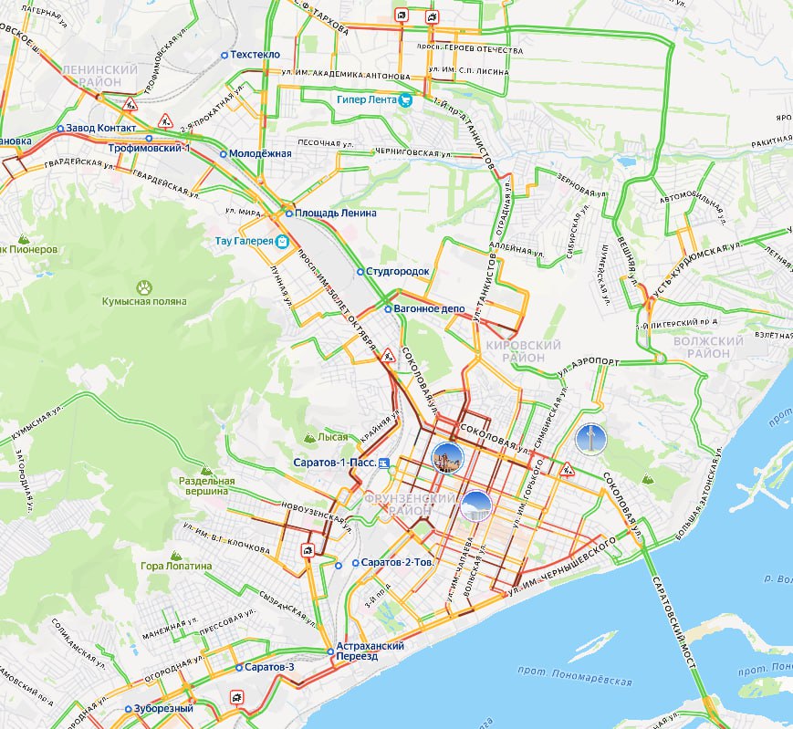 Вечер пятницы саратовцы встречают в 10-балльных пробках