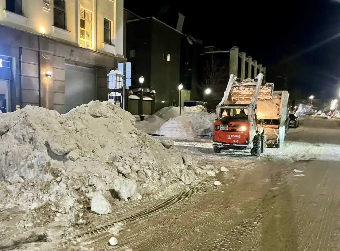 В течение ночи коммунальные службы города устраняли последствия снегопада
