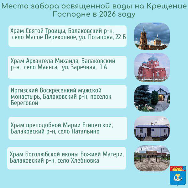В карточках собрана информация о том, где можно набрать освященную воду в Балаковском муниципальном районе