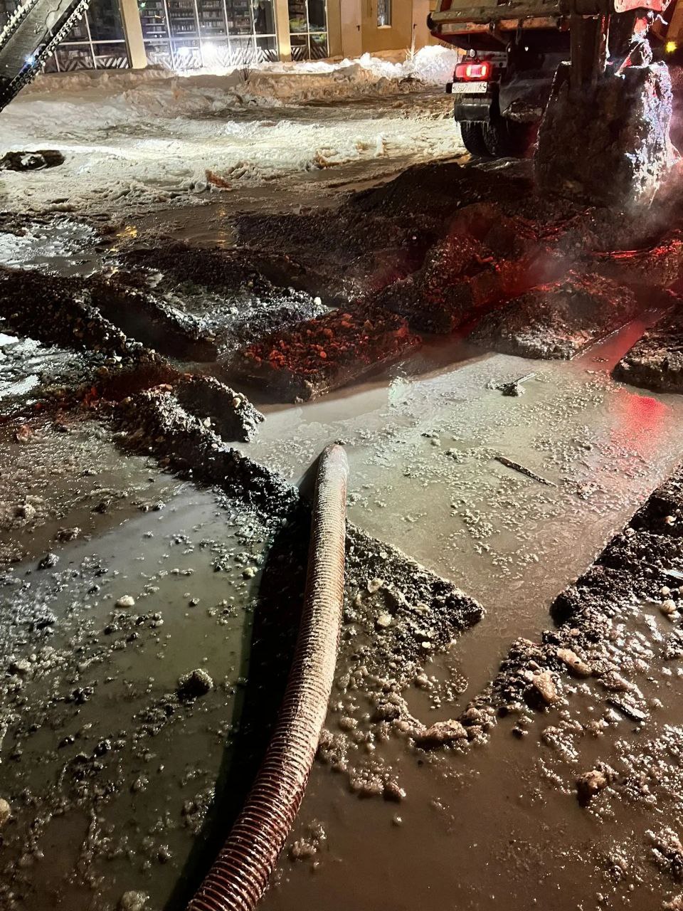 На улице Пушкина продолжается ремонт трубопровода. На объекте задействованы 7 единиц техники и аварийная бригада.