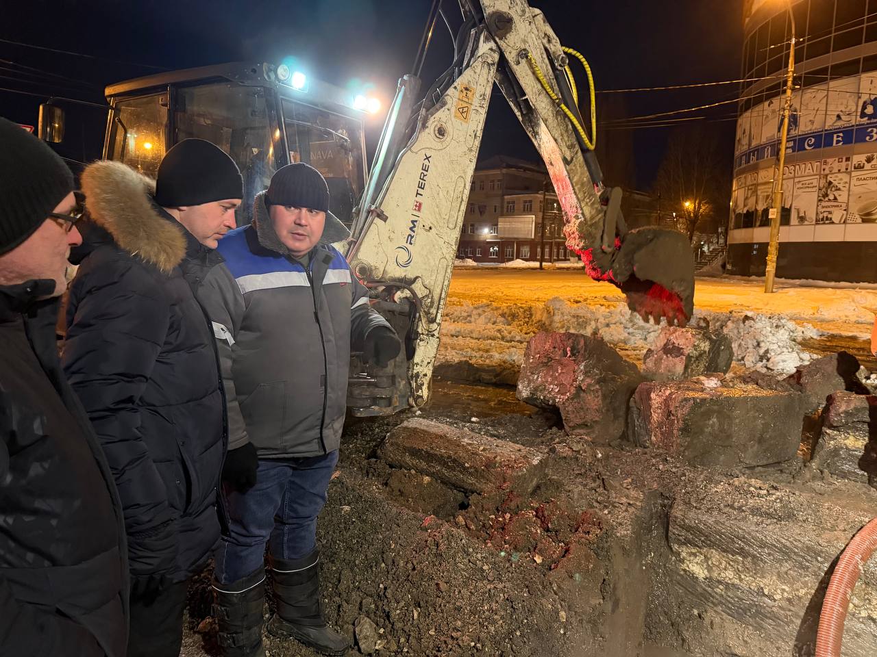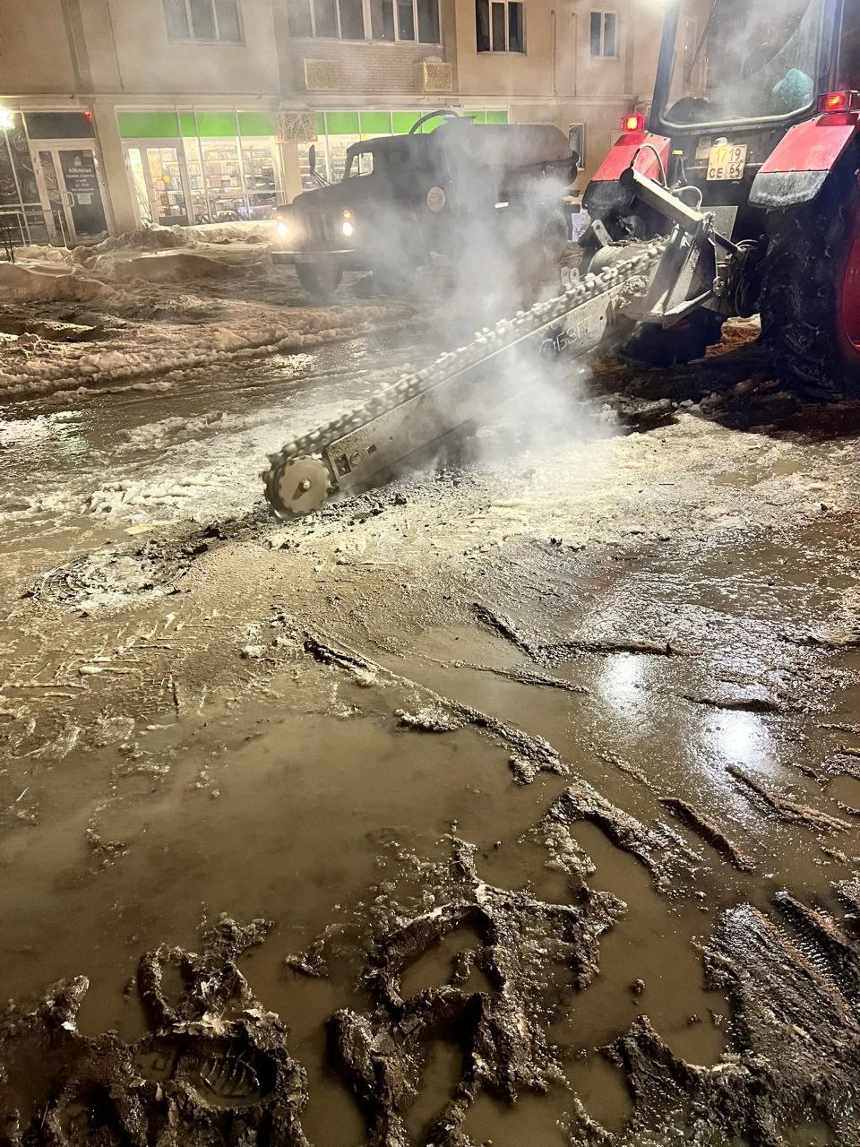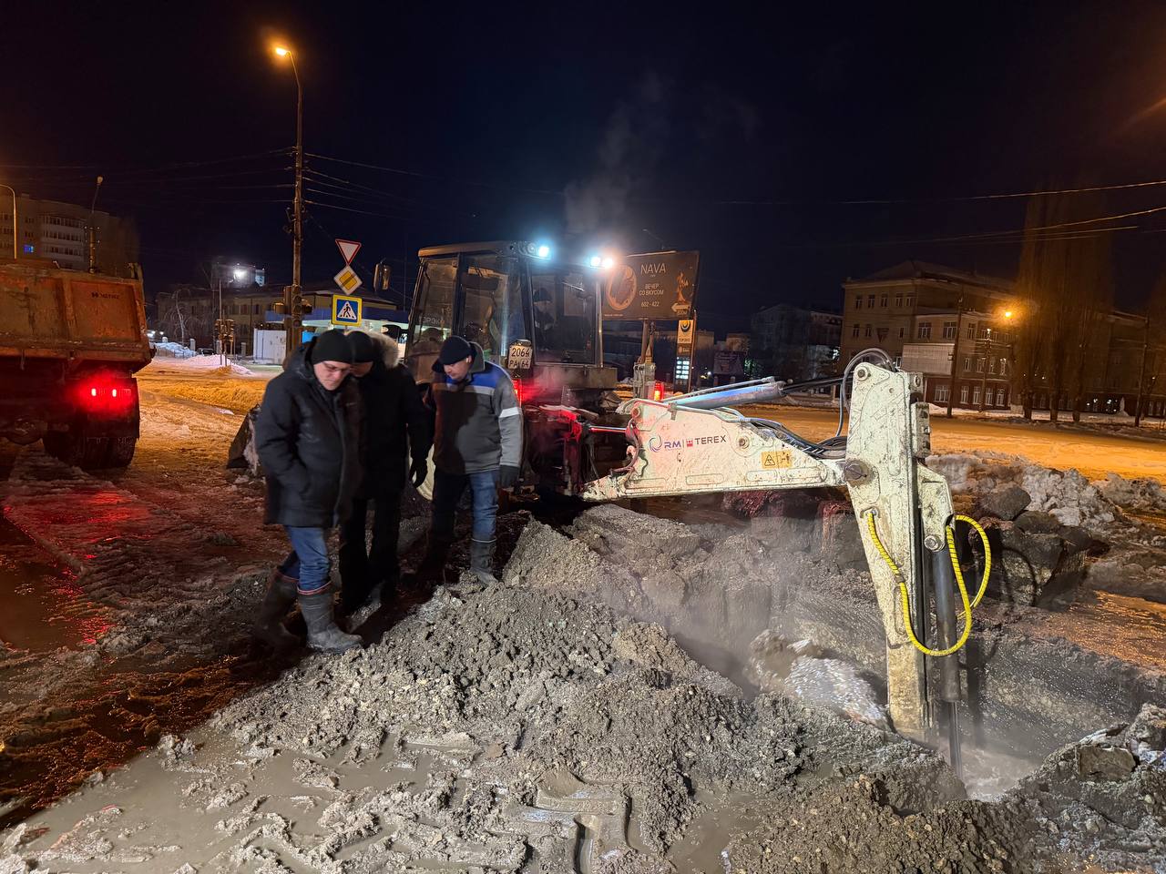 На улице Пушкина проводятся ремонтные работе на трубопроводе диаметром 400 мм. На объекте задействованы 7 единиц техники и аварийная бригада МУП «Энгельс-Водоканала».