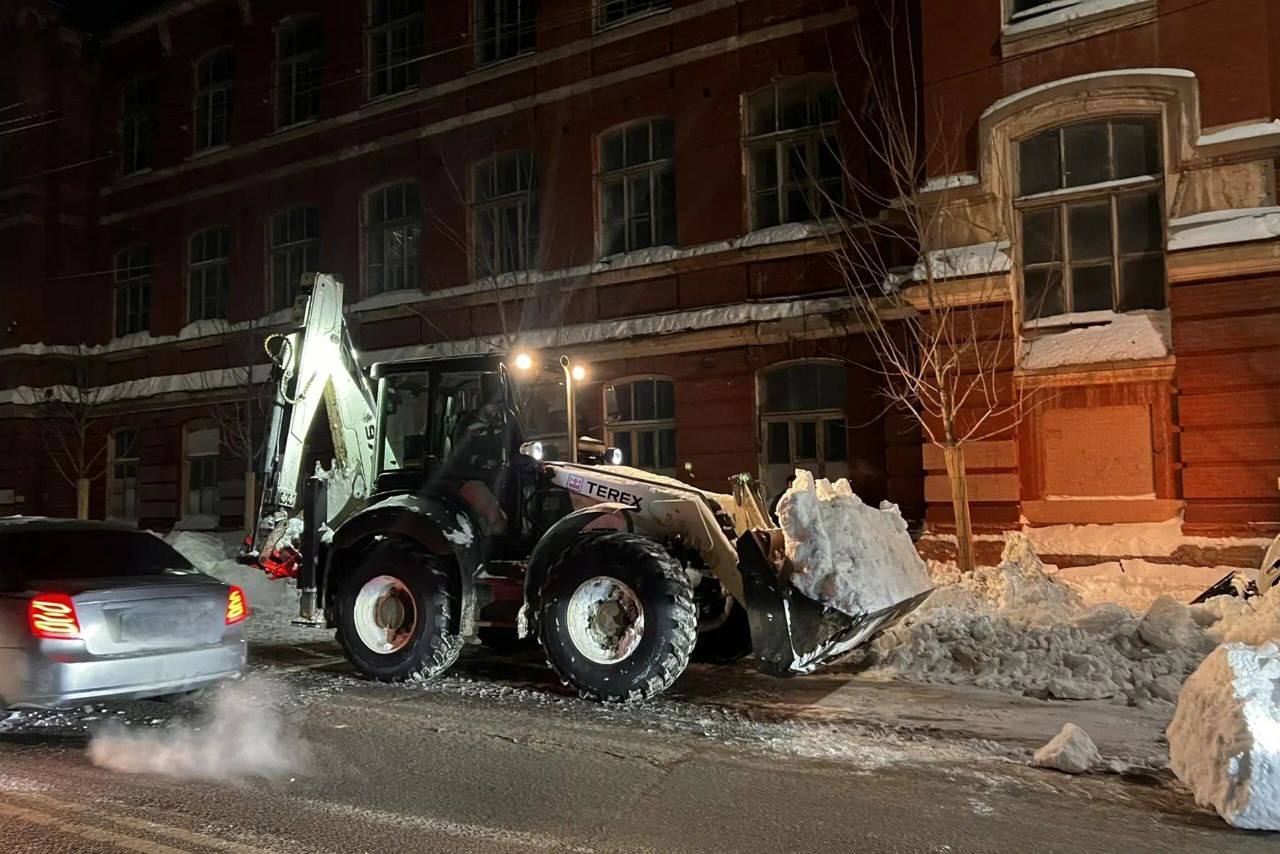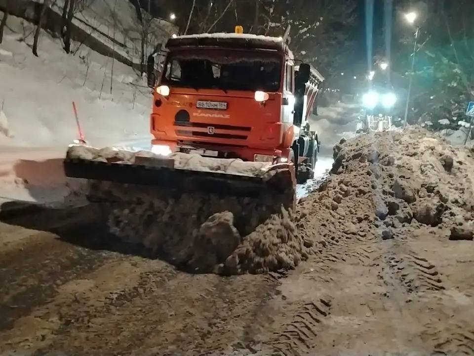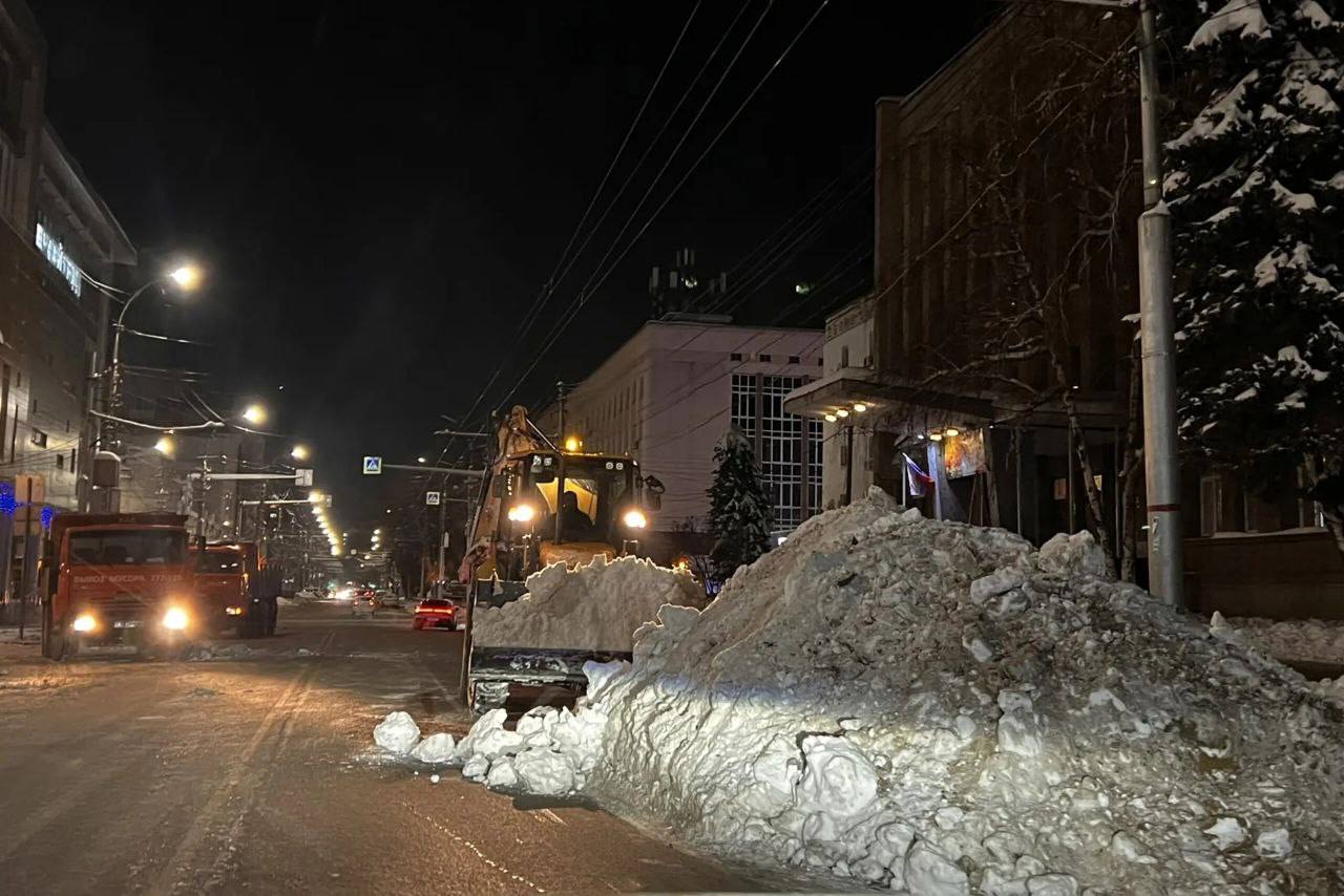 В течение ночи коммунальные службы города устраняли последствия снегопада