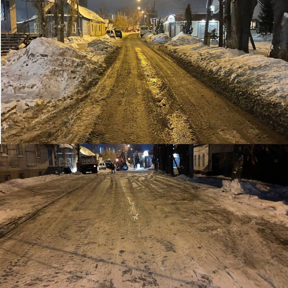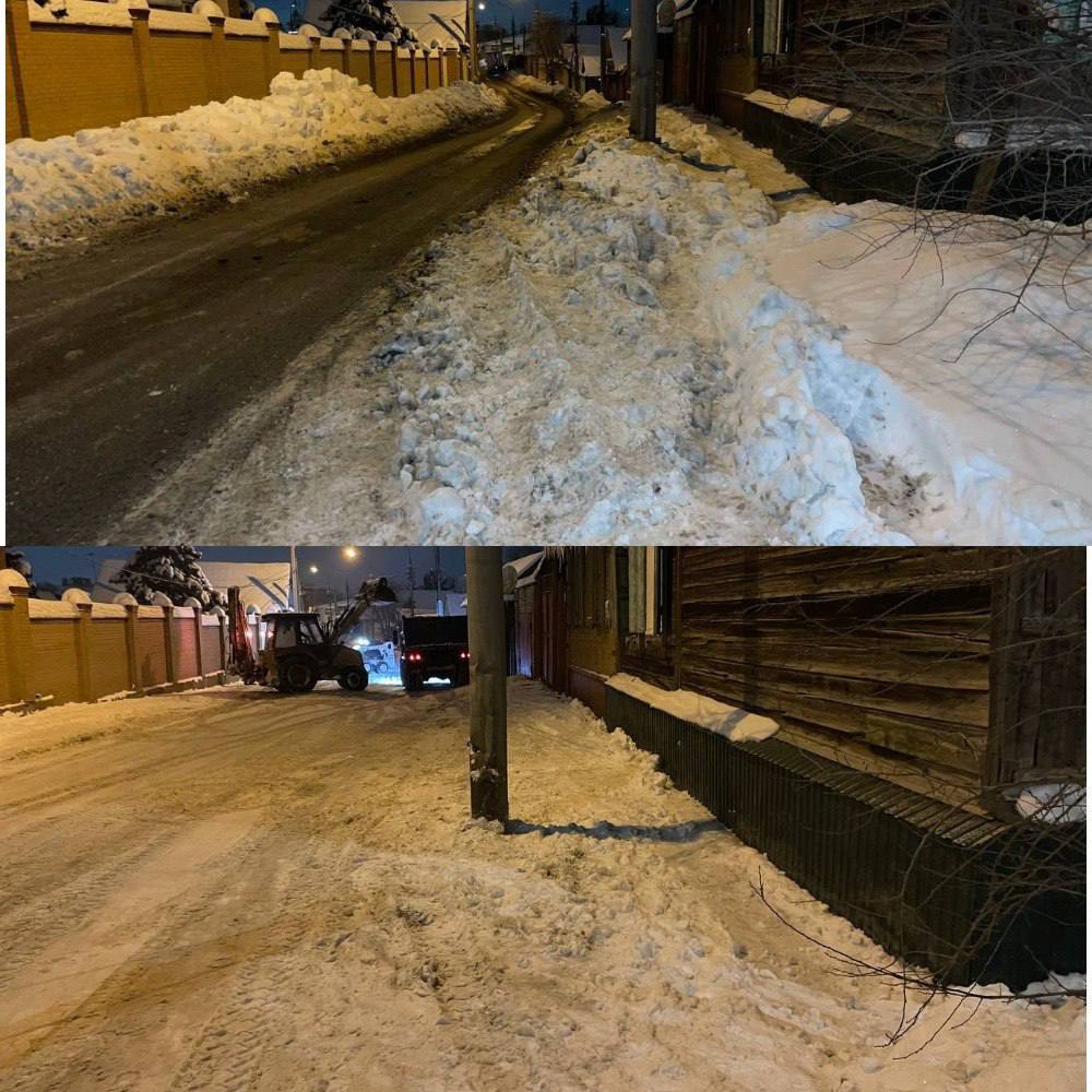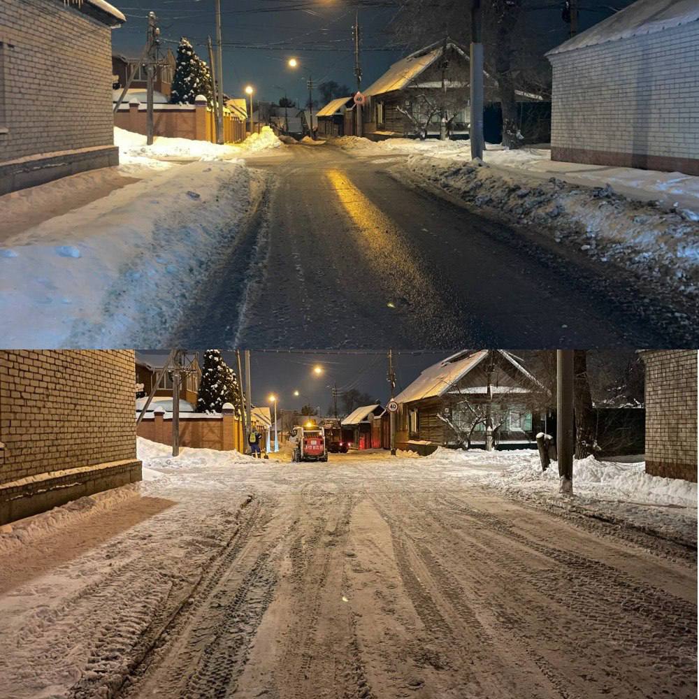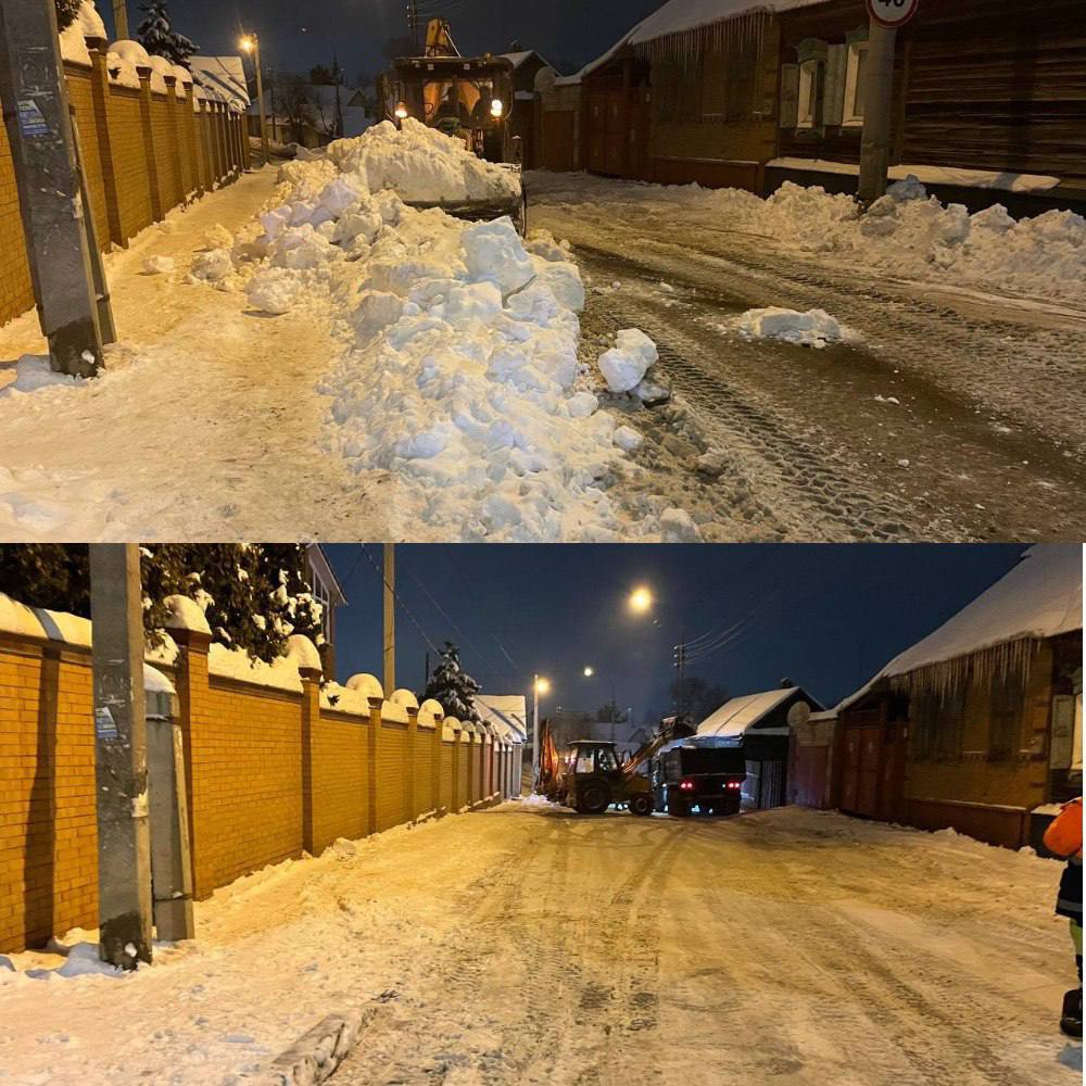 В ночь проводились работы по вывозу снега с улиц: Тихая, М. Горького, Пл. Ленина, Телеграфная и других.