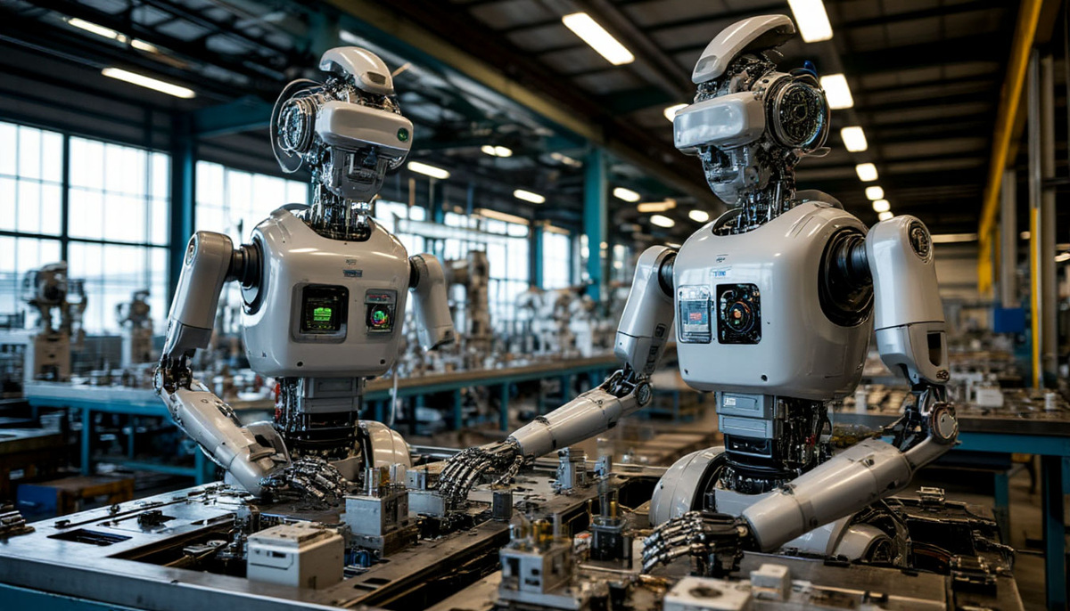 Заводы теперь работают круглосуточно, использую как роботов, так и искусственный интеллект для управления. Человеческий фактор минимизируется, а управления всей системой осуществляется издалека. Скорость и качество производства значительно увеличиваются, что влияет на экономику в целом.