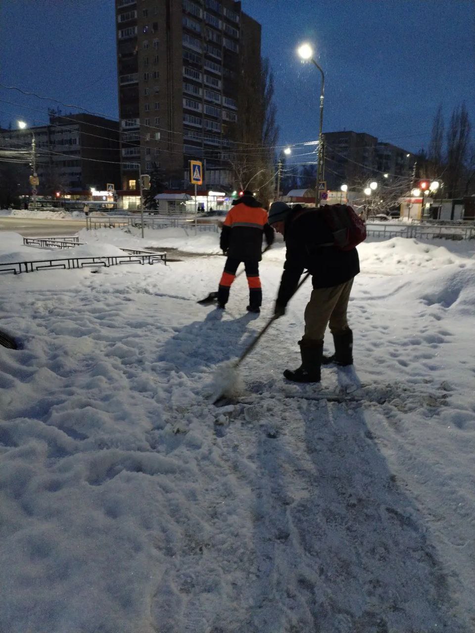 На улицах Свердлова, Ленина и Волжской была произведена механизированная и ручная уборка дорог и тротуаров. Рабочие также очищают остановочные павильоны и пешеходные дорожки в парках и скверах. По всему городу производится посыпка дорог и тротуаров пескосоляной смесью.