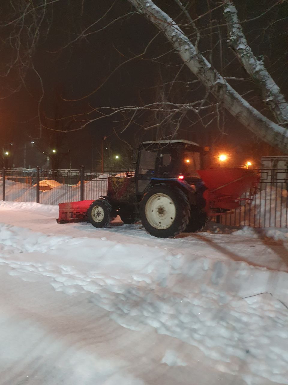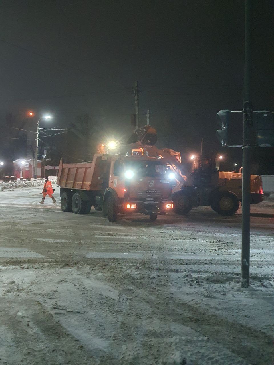 В течение ночи коммунальные службы устраняли последствия снегопада