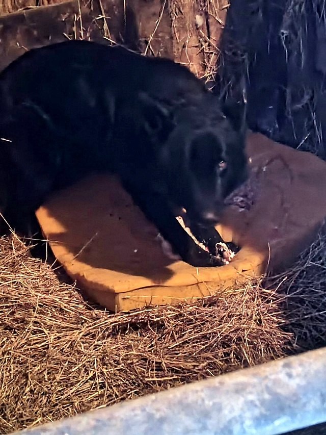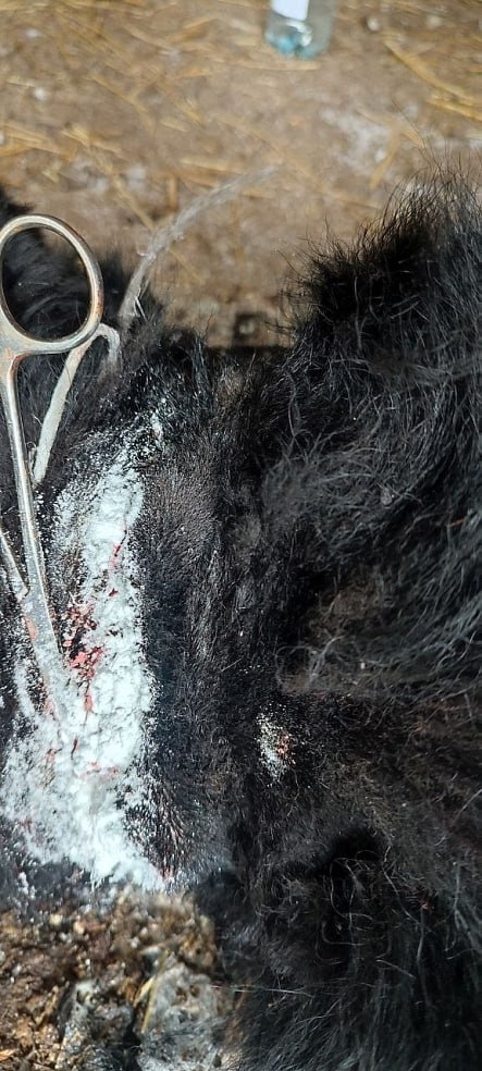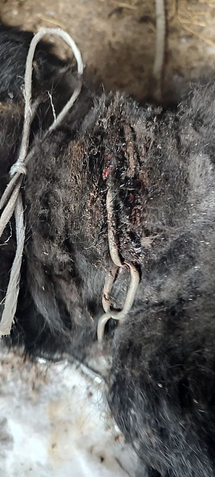 Ветврач провел операцию: рассек кожу, чтобы извлечь застрявшие звенья, а затем тщательно обработал рану антисептиками. Швы накладывать не стали — рана будет заживать естественным путем.