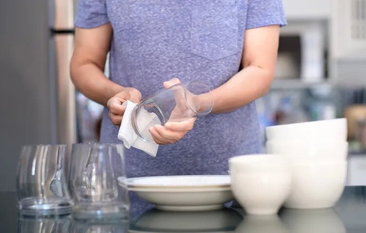 Стеклянные и хрустальные изделия лучше мыть теплой водой, используя мягкие моющие средства. Для общей безопасности рекомендуется застилать раковину полотенцем, чтобы минимизировать риск повреждения.
