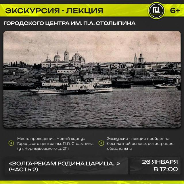 Городской центр им. П.А. Столыпина приглашает на экскурсию-лекцию «Волга-рекам родина царица...» (часть 2)