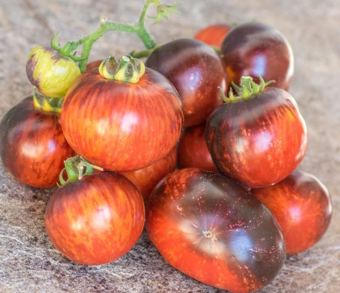 Томат «Гном Энто полосатый» удивляет своей оригинальностью, сочетая миниатюрные размеры с экзотическим окрасом. Эти красно-оранжевые плоды с яркими чернильными полосками имеют сладковатый, фруктовый вкус, который приятен для гурманов. Этот сорт отличается высокой урожайностью и простотой в уходе, что делает его отличным выбором как для горшков, так и для садов.