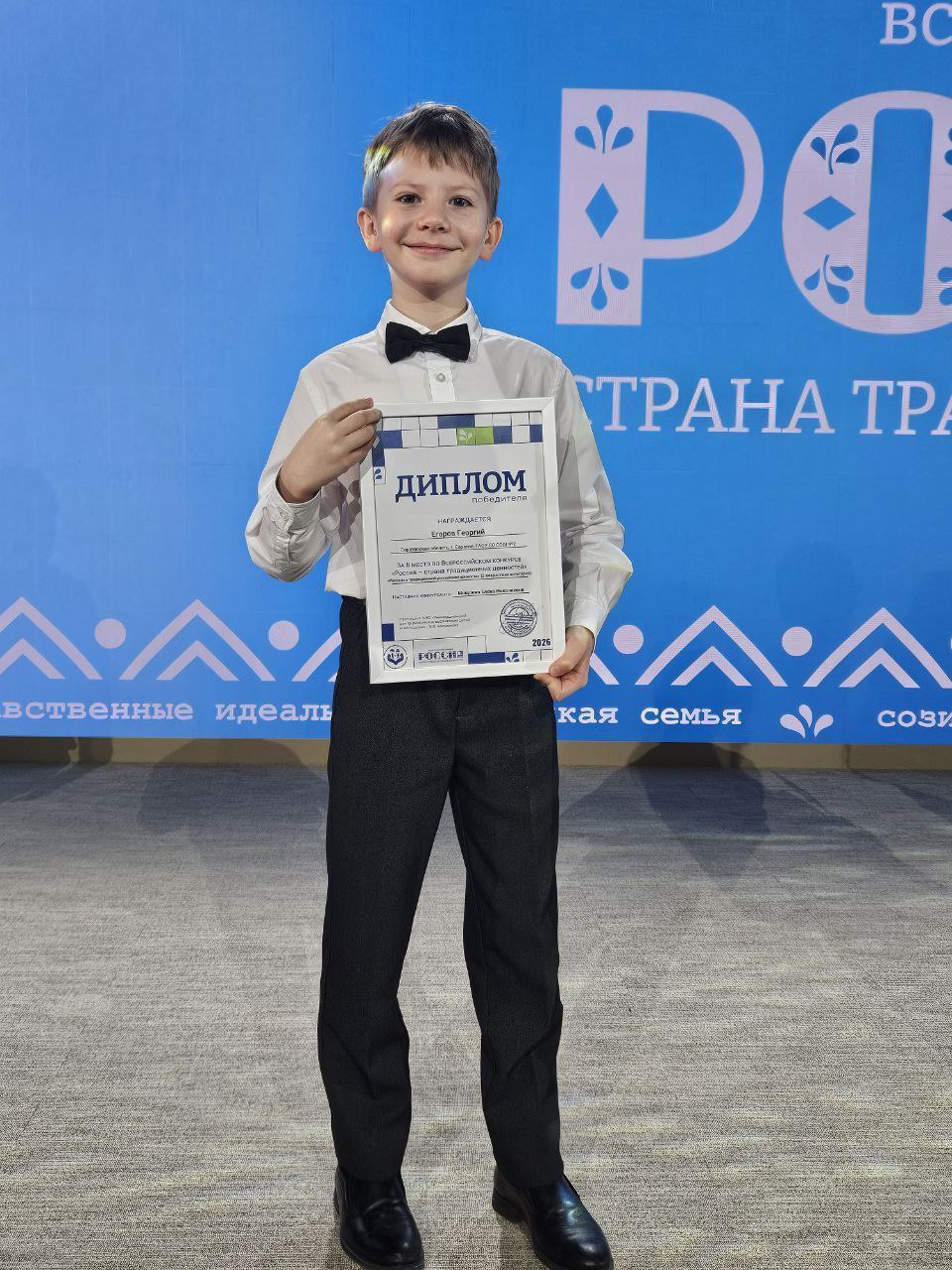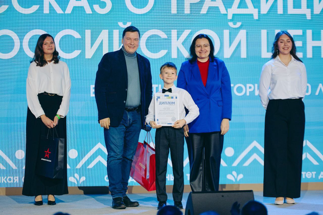 Второе место в номинации «Рассказ о традиционной российской ценности» занял Георгий Егоров, ученик 4 класса школы № 2 им. В.П.Тихонова. В своей работе Георгий выбрал созидательный труд. Совместно с наставником – классным руководителем Еленой Мищенко он подготовил проект, где подробно рассказал о своем понимании ценности, общественно значимых проектах и акциях, где каждый может внести свой вклад: