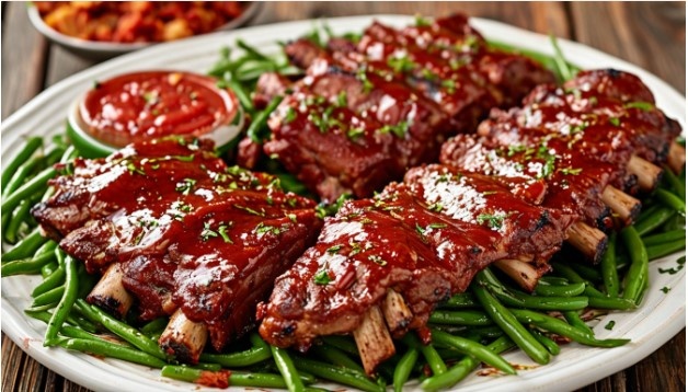 Не забудьте, пока это происходит, смешать консервированную и стручковую фасоль, добавив оставшийся острый соус и горчицу. Прогрейте эту смесь на гриле в течение 15 минут.