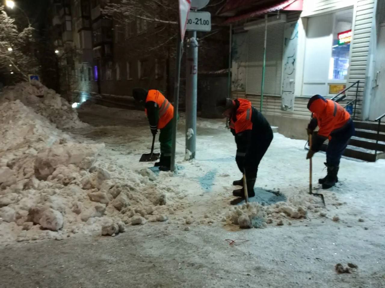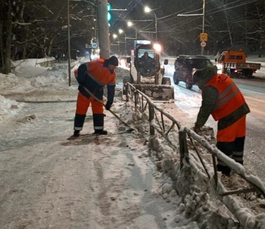 В течение ночи коммунальные службы города устраняли последствия снегопада