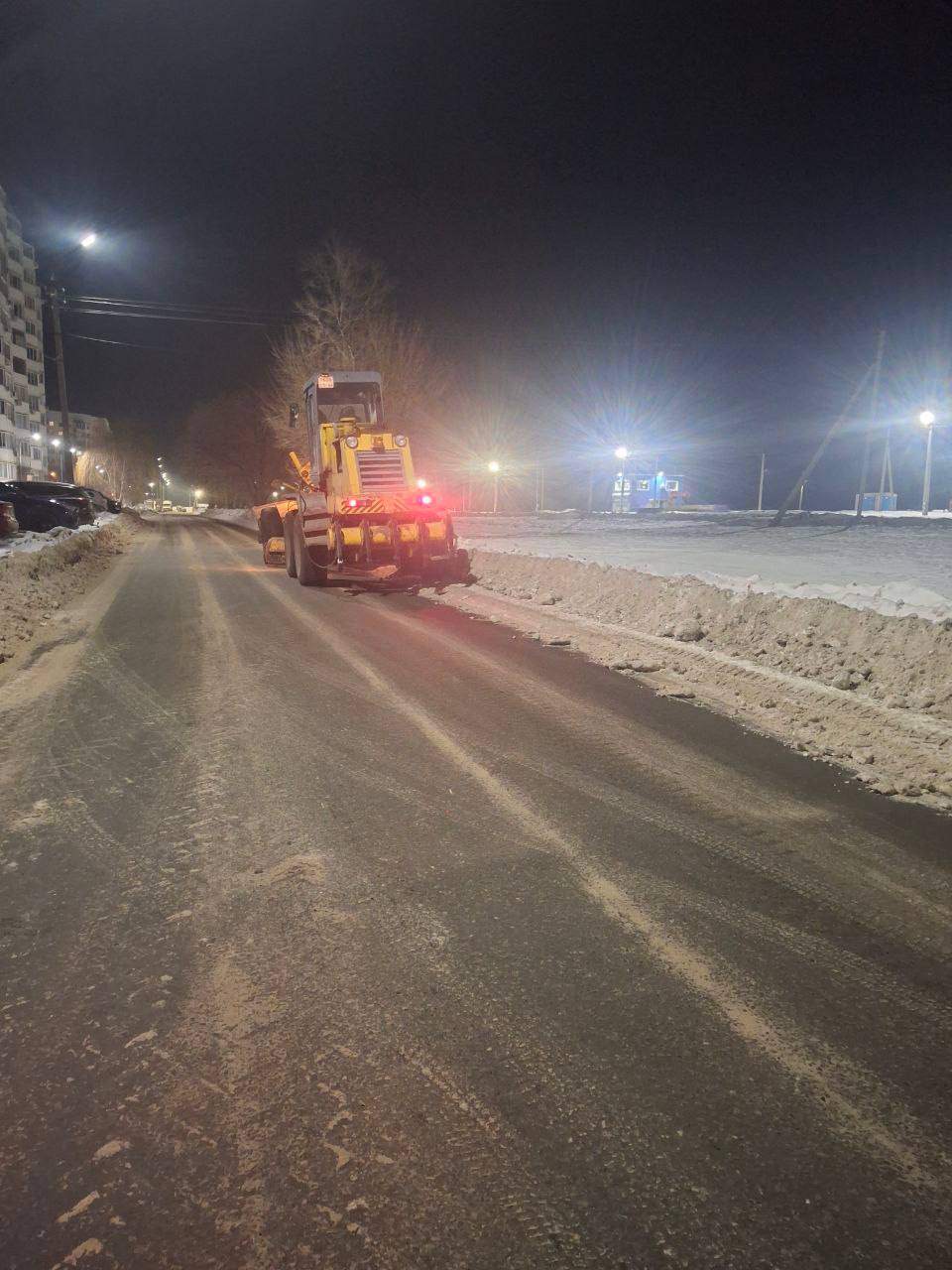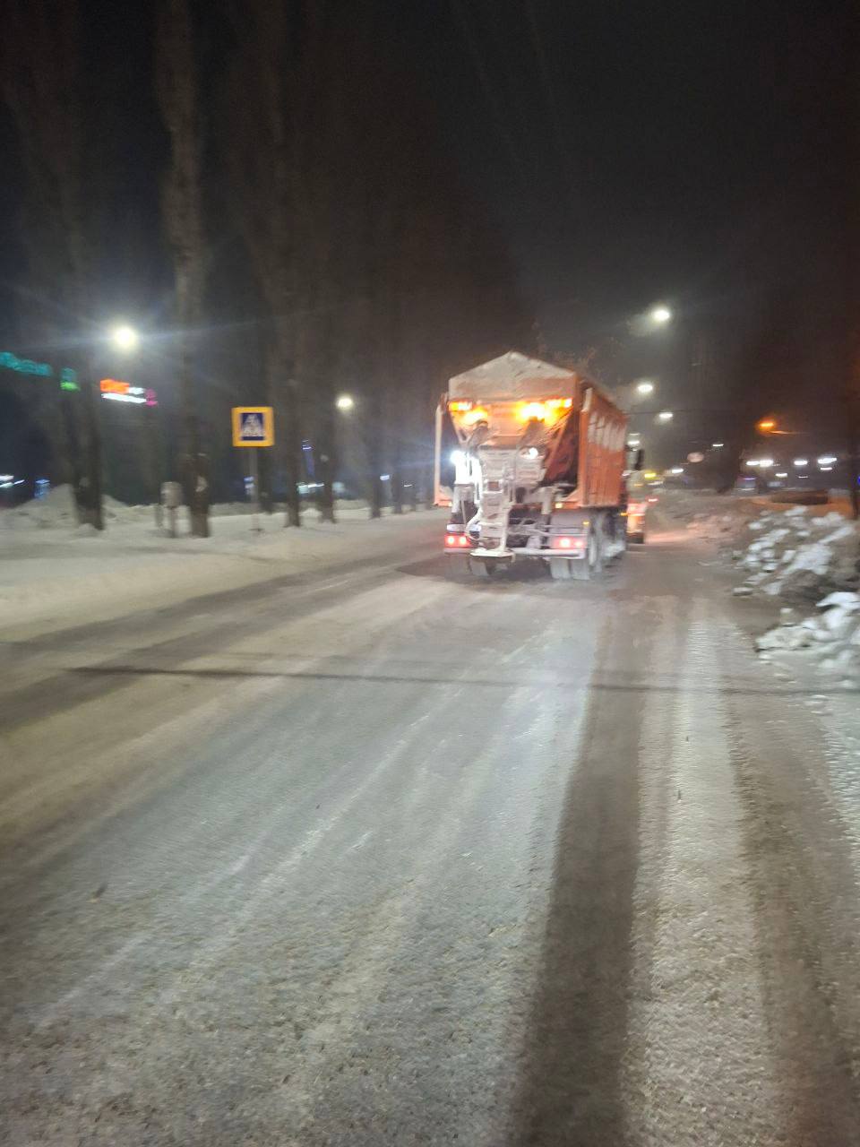 В ночное время техника приступила к расширению проезжей части в центральной, островной и заканальной частях города, а также к обработке дорог пескосоляной смесью. В работах участвовало 9 единиц техники.