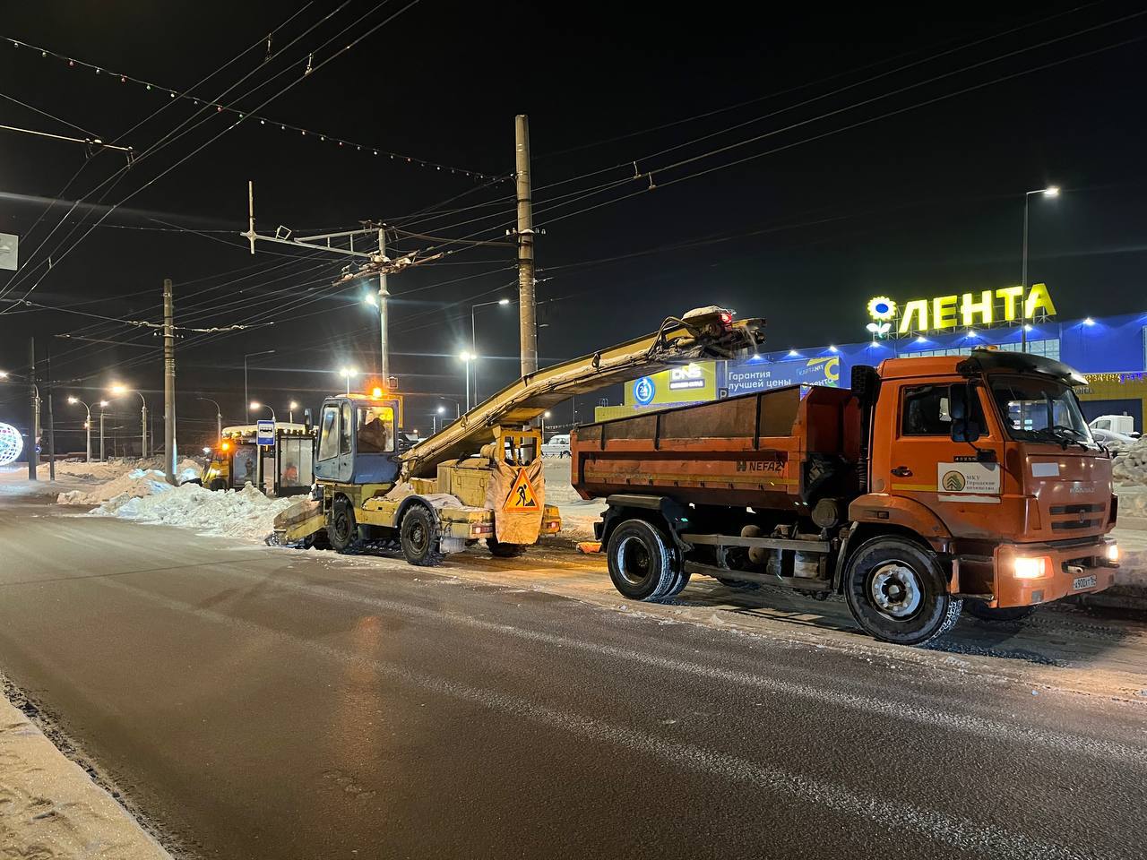 Работы по уборке снежных масс с улично-дорожной сети продолжаются в круглосуточном режиме