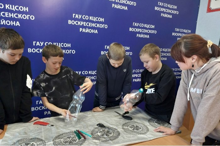 Кормушки для птиц на занятиях творческой мастерской делали дети, посещающие воскресенский центр соцобслуживания