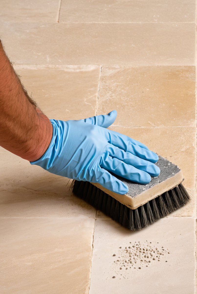 Для качественного удаления цемента рекомендуется комбинировать химическую чистку с механическим воздействием. Химическое средство размягчает загрязнения, а жесткая щетка помогут полностью удалить их с поверхности. На рынке представлены как готовые растворы для небольших участков, так и концентраты, подходящие для крупных площадей. Рекомендуется сначала провести тест на пробном участке, чтобы избежать повреждений камня. Алгоритм таков: наносят состав, ждут указанное время, а затем аккуратно удаляют загрязнения щеткой.