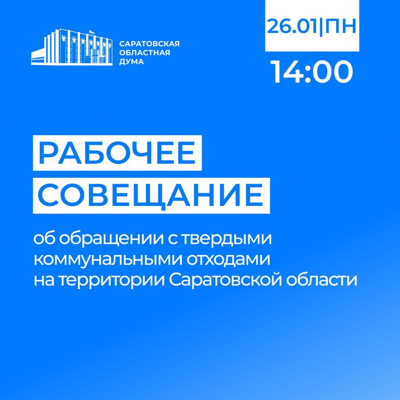 26 января состоится рабочее совещание на тему: «Об обращении с твердыми коммунальными отходами на территории Саратовской области»