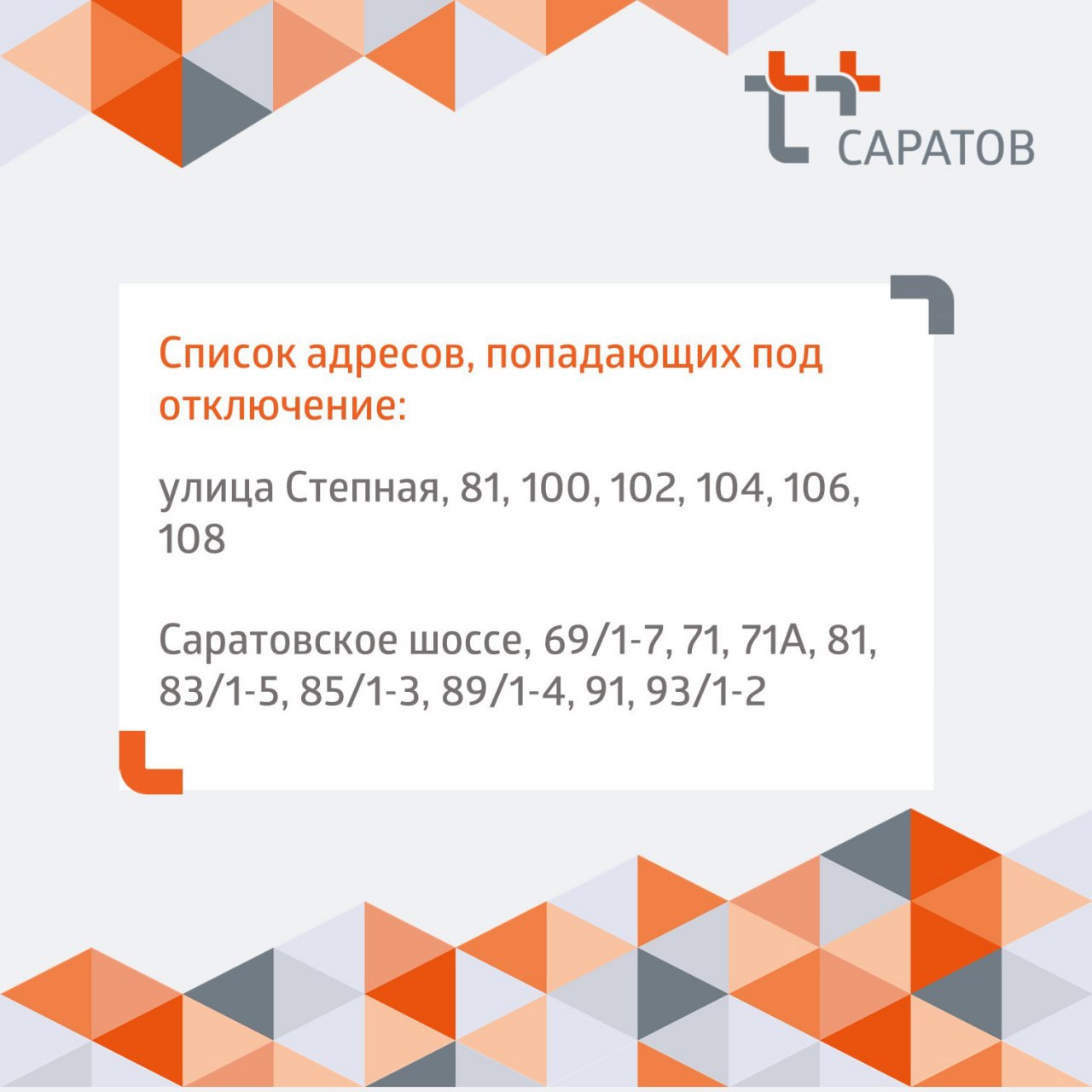 Сегодня на время работ приостановим отопление и горячее водоснабжение по нескольким адресам. Их список — в карточке.