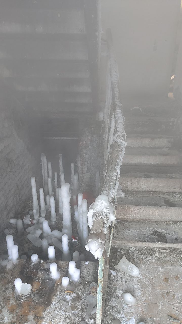 В подъезде дома на Прудной образовались ледяные сталагмиты