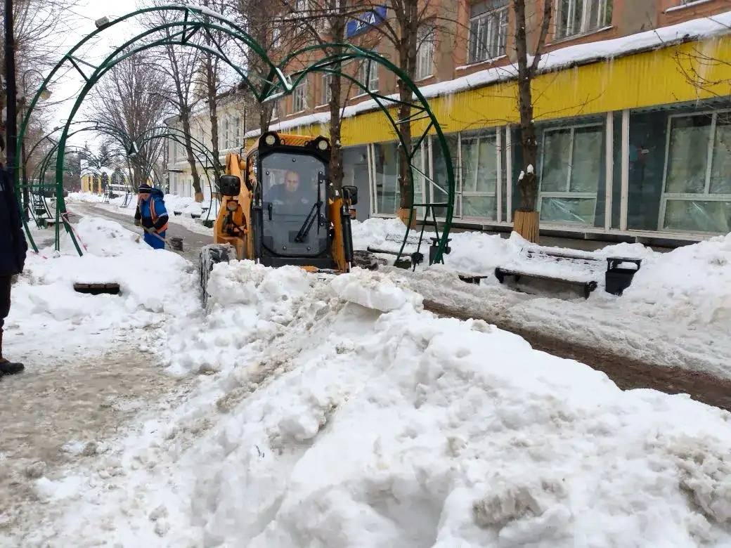 Сегодня в дневное время на улицах работали: снегоротор, тротуароуборочные машины, тракторы МТЗ, погрузочная и самосвальная техника, лаповый снегопогрузчик и малая механизация.