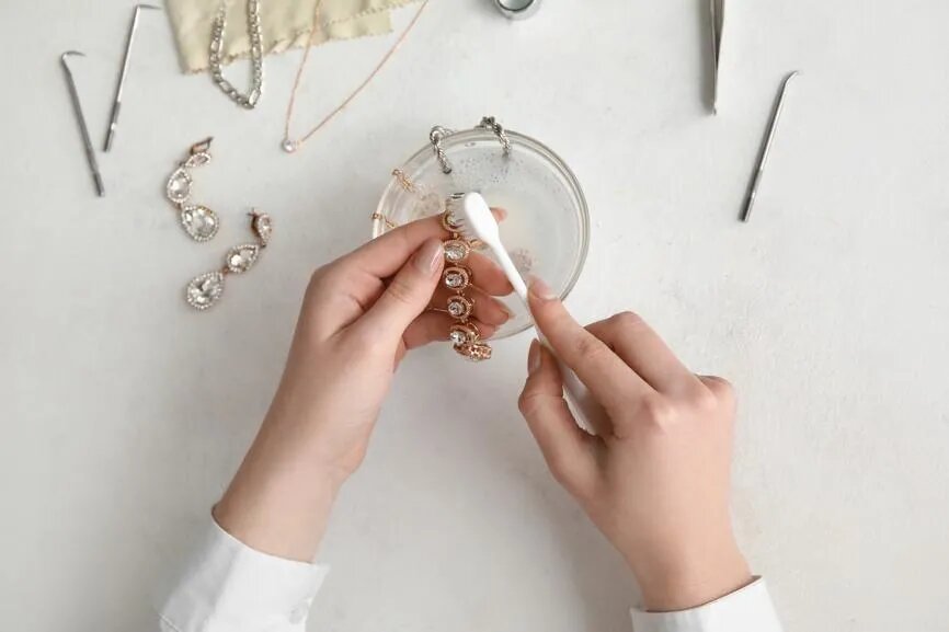 - Украшения: положить фольгу в ёмкость, залить горячей водой, добавить 1 ст. л. соды, опустить изделие на 10–15 минут, промыть и вытереть мягкой тканью.