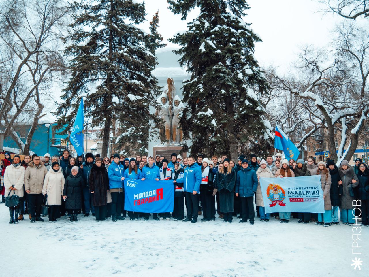 В Саратове у памятника Героям Краснодона состоялось патриотическое мероприятие, приуроченное к Дню памяти молодогвардейцев.